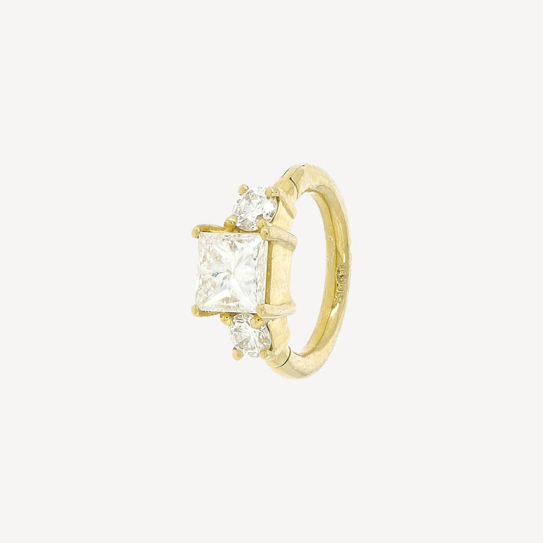 Piercing Créole 6.5mm Or Jaune Diamant Princesse 3x3mm
