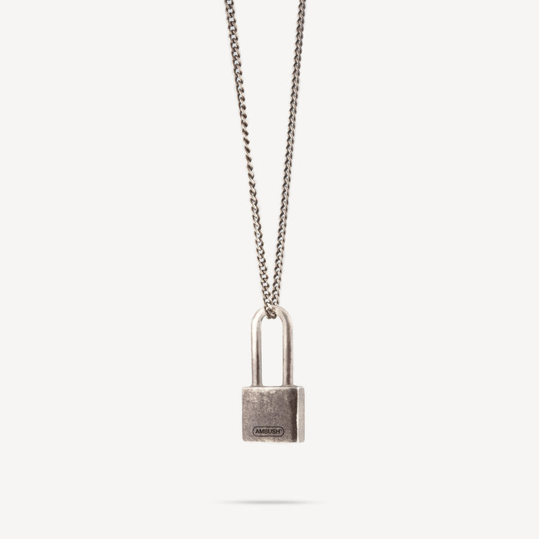 Collier avec pendentif cadenas en argent.