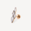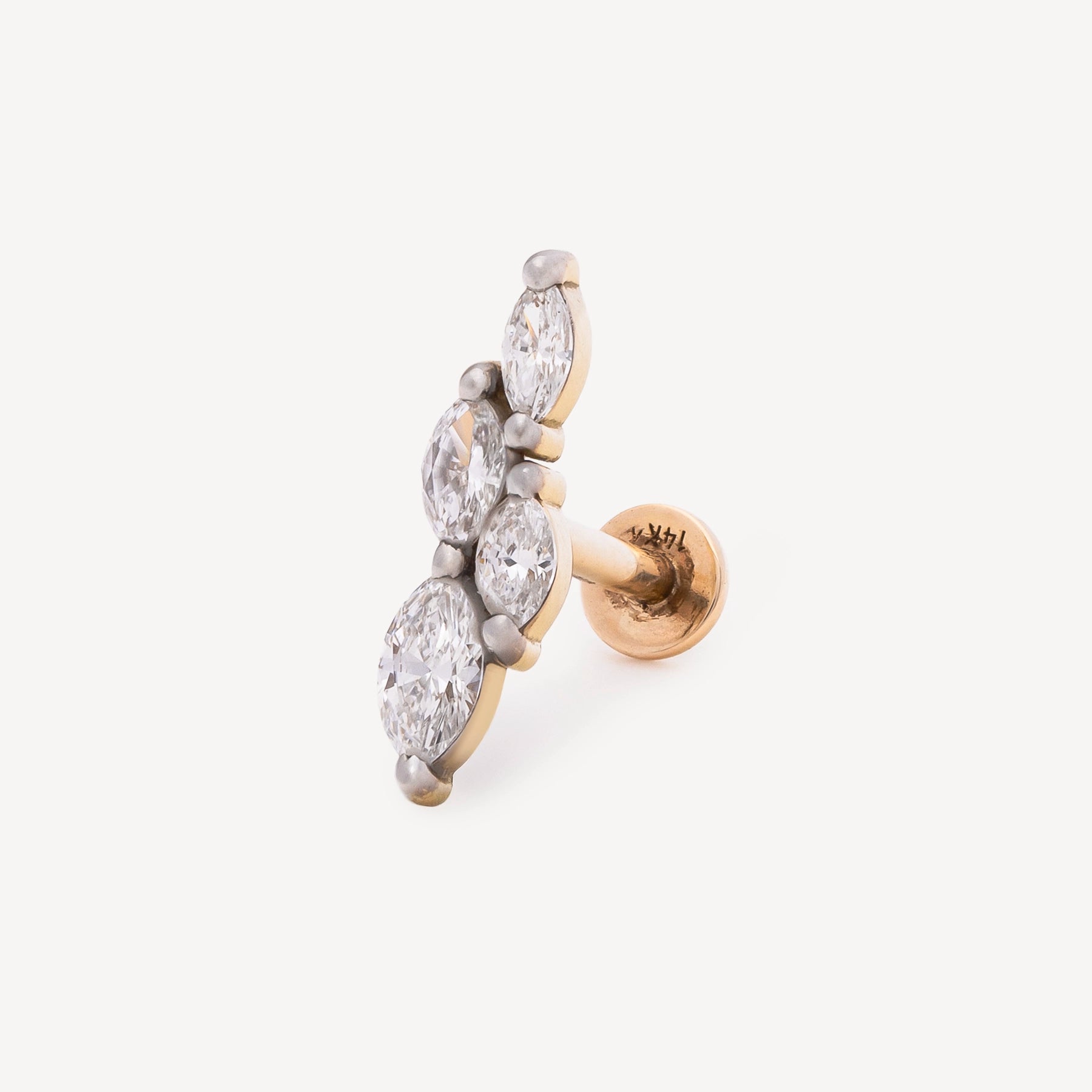 La boucle d’oreille Piercing Marquise Bar de Foen en or jaune joue sur une ligne allongée et graphique, ponctuée de diamants marquises qui captent la lumière avec précision, donnant au bijou une énergie nette et résolue, comme un geste suspendu. Les diamants blancs sont associés à la pureté et à la clarté, et sont reconnus pour accompagner l’équilibre intérieur tout en amplifiant l’énergie de celui ou celle qui le porte.