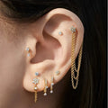 Boucle d'oreille Stud Diamond Flower Chain Wrap with Dangle Or jaune