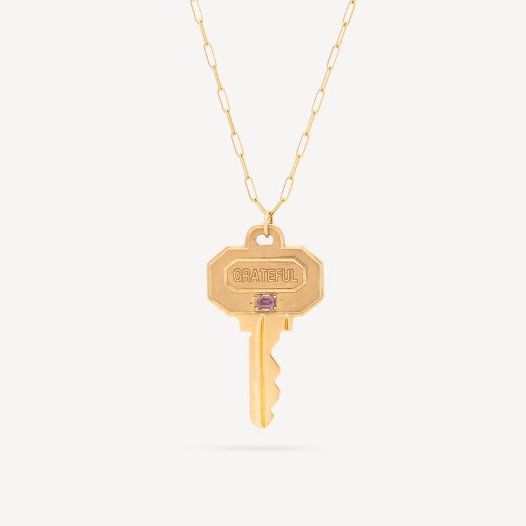 Ce collier unique associe une clé en or jaune à une chaîne style paperclip, incarnant l’esprit de la collection Past – Present – Future de Future Fortune. La clé est gravée sur-mesure, portant un message personnel, et devient ainsi un talisman intime, symbole de résilience et de mémoire. En or jaune et sertie d’un saphir rose, cette création reflète l’élégance contemporaine et la philosophie de la marque, transformer chaque bijou en un objet à la fois esthétique, significatif et intemporel, destiné à accompagner celui ou celle qui le porte à travers le temps.