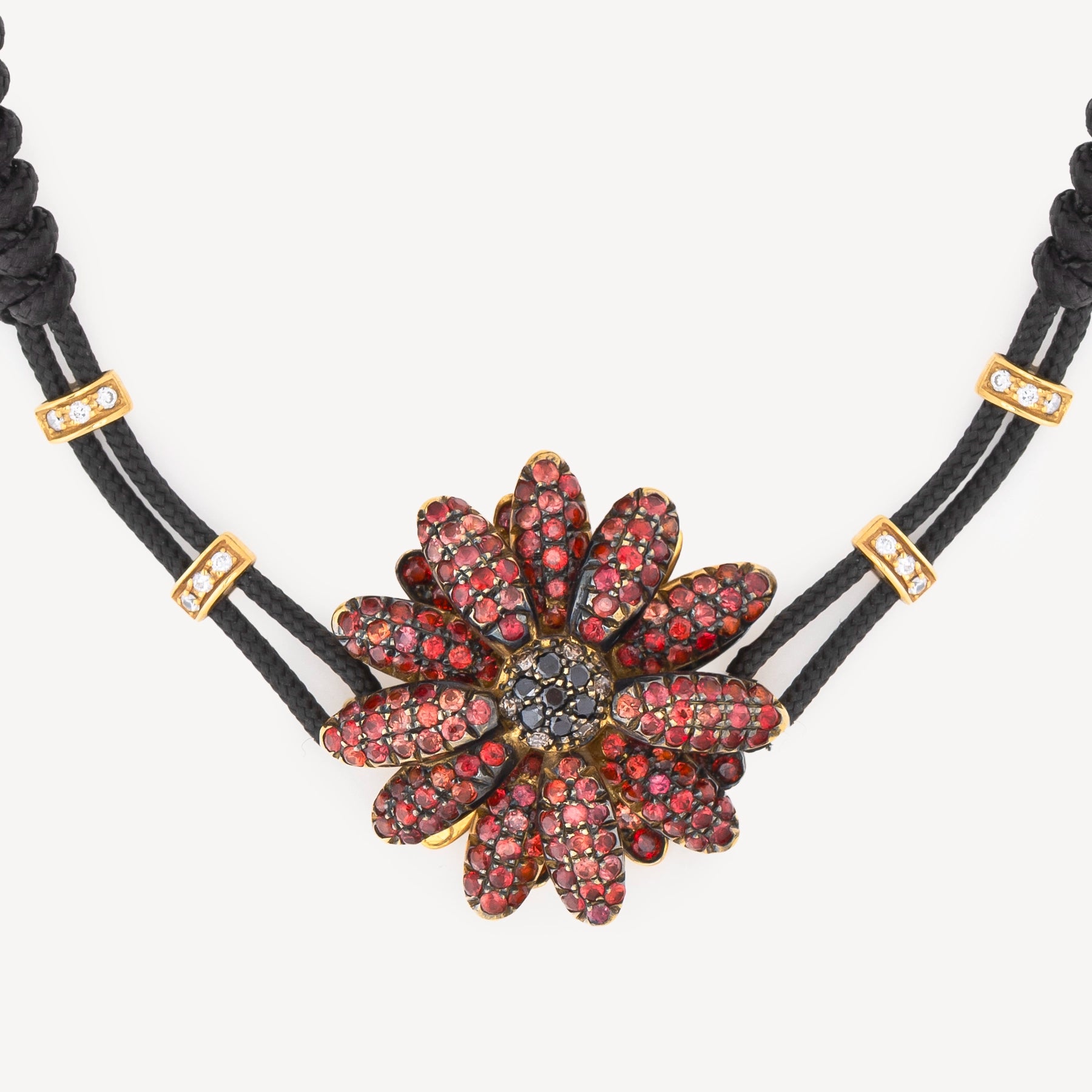 Ce bracelet Daisy en or jaune de Pippo Perez met en valeur un motif délicat, serti de saphirs et de diamants blancs, pour une composition précieuse et lumineuse montée sur un cordon noir. Les saphirs symbolisent la sagesse, la sérénité et la protection, tandis que les diamants blancs incarnent la pureté et la clarté intérieure, faisant de ce bijou un symbole d’élégance et d’équilibre.