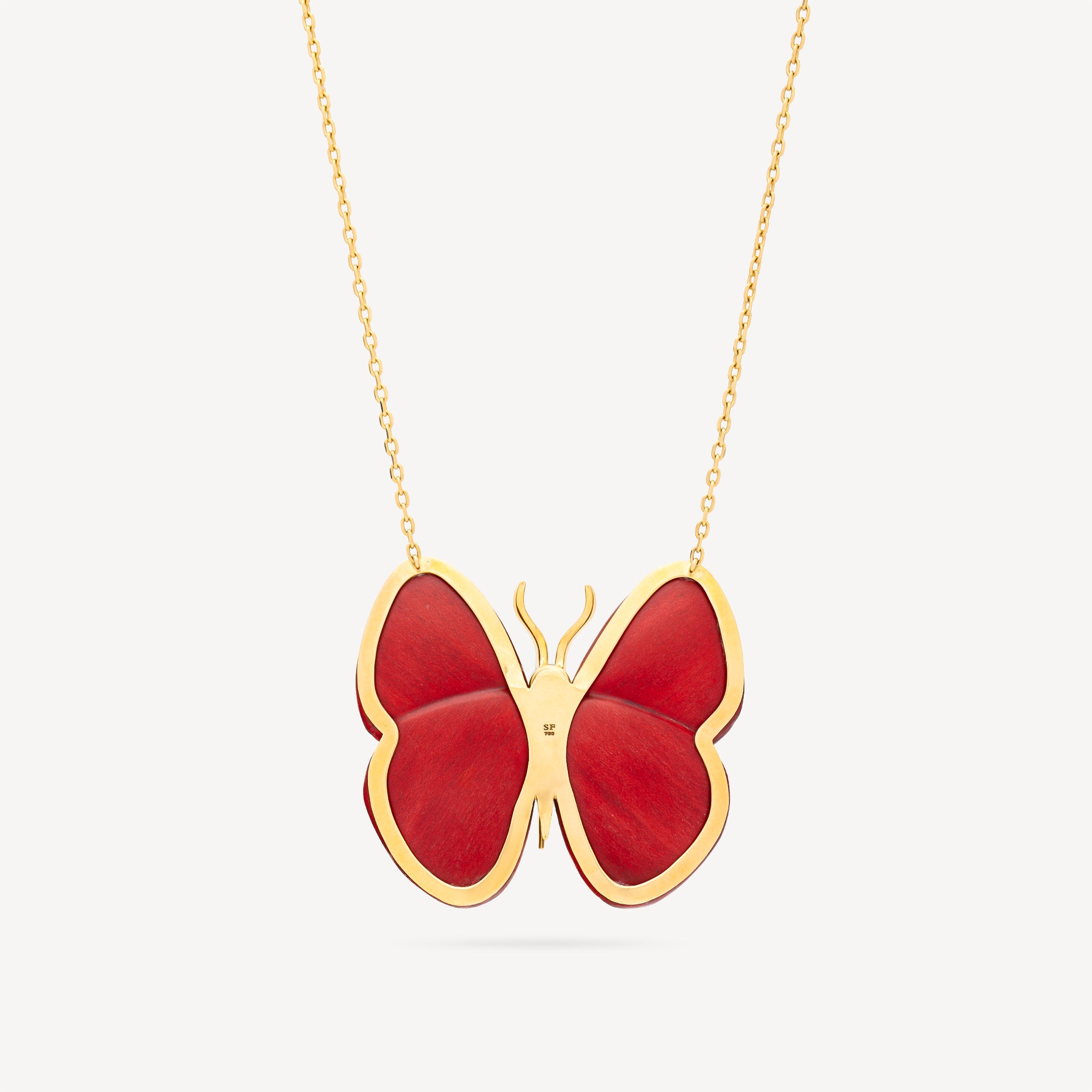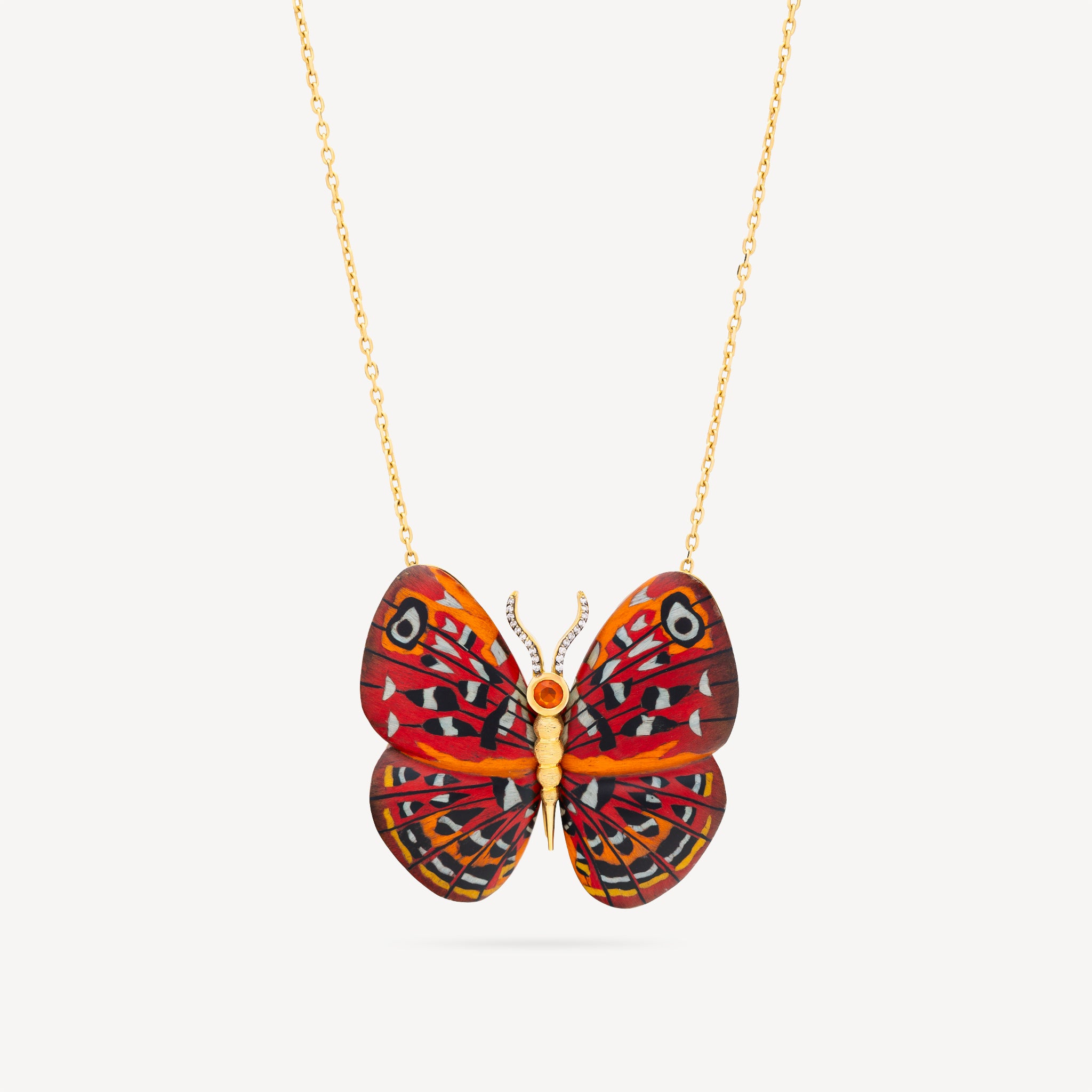 Collier Marquetry Butterfly Gold Red