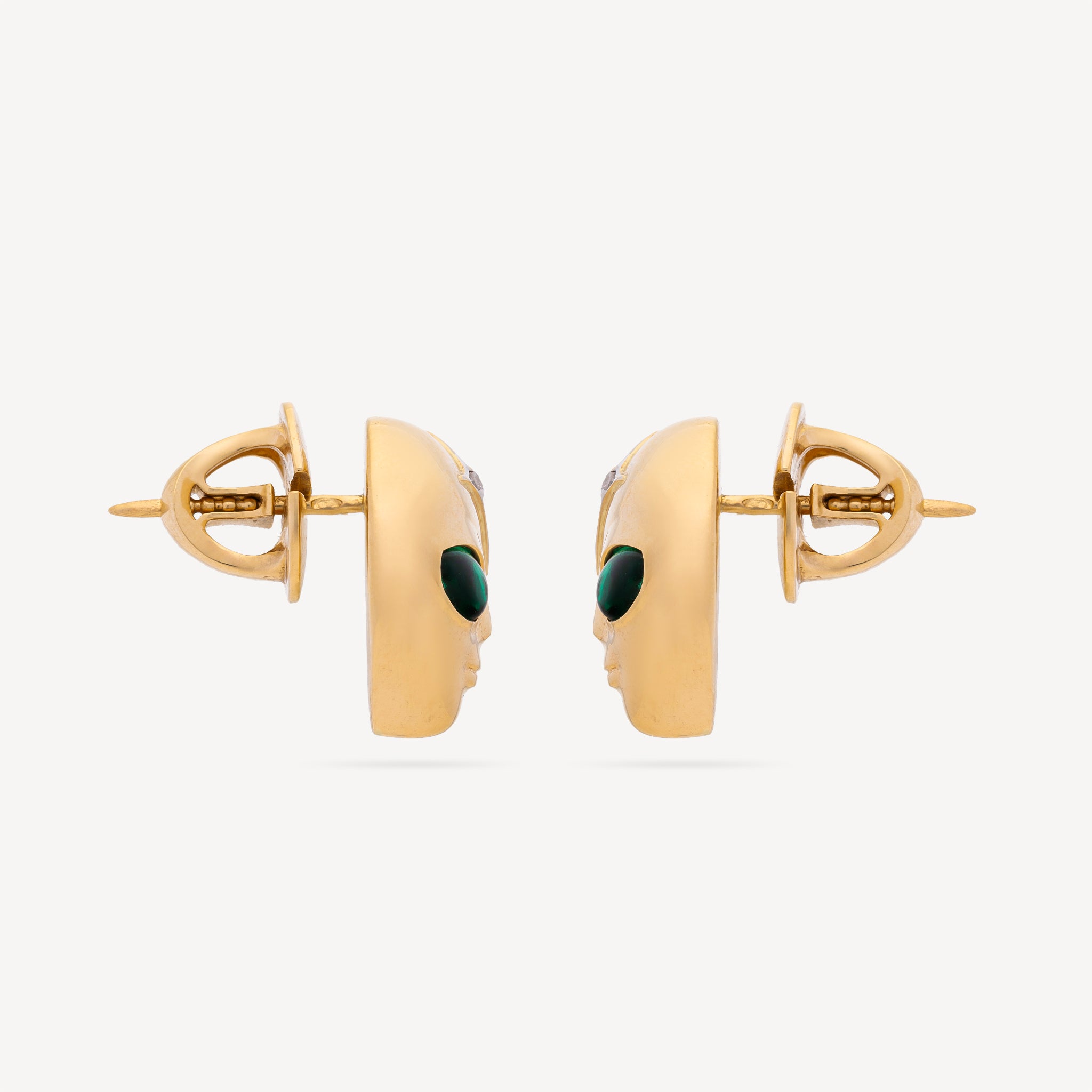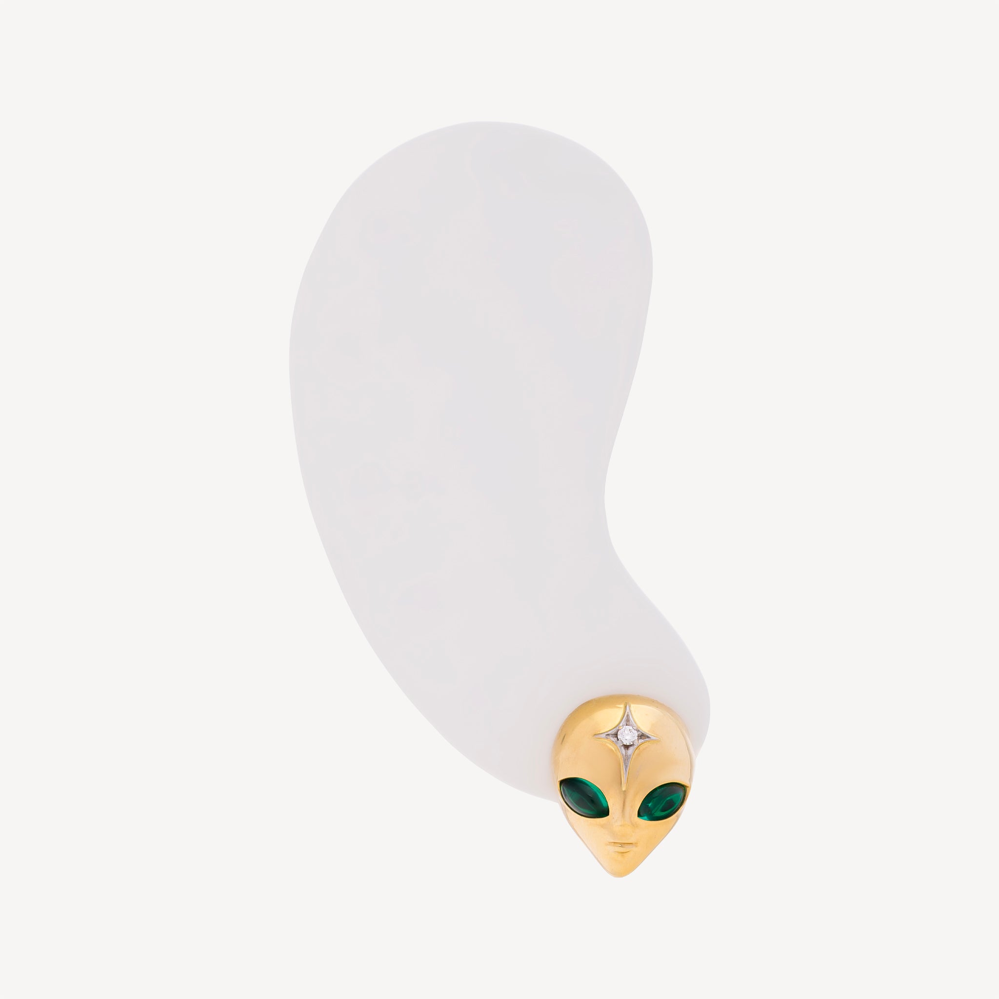 Ces ravissantes boucles d'oreilles She's an Alien sont réalisées en or jaune brillant, elles représentent une femme extraterrestre aux yeux vert émeraude éclatants. Une étoile en diamant étincelante orne son front. L’émeraude apaise le cœur, harmonise les émotions et favorise la guérison aussi bien physique qu’émotionnelle. Le diamant blanc protège contre les énergies négatives, encourage l’harmonie intérieure et développe la force et la détermination.