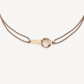 Bracelet clé en or blanc ornée d’un quartz fumé, monté sur un cordon taupe.