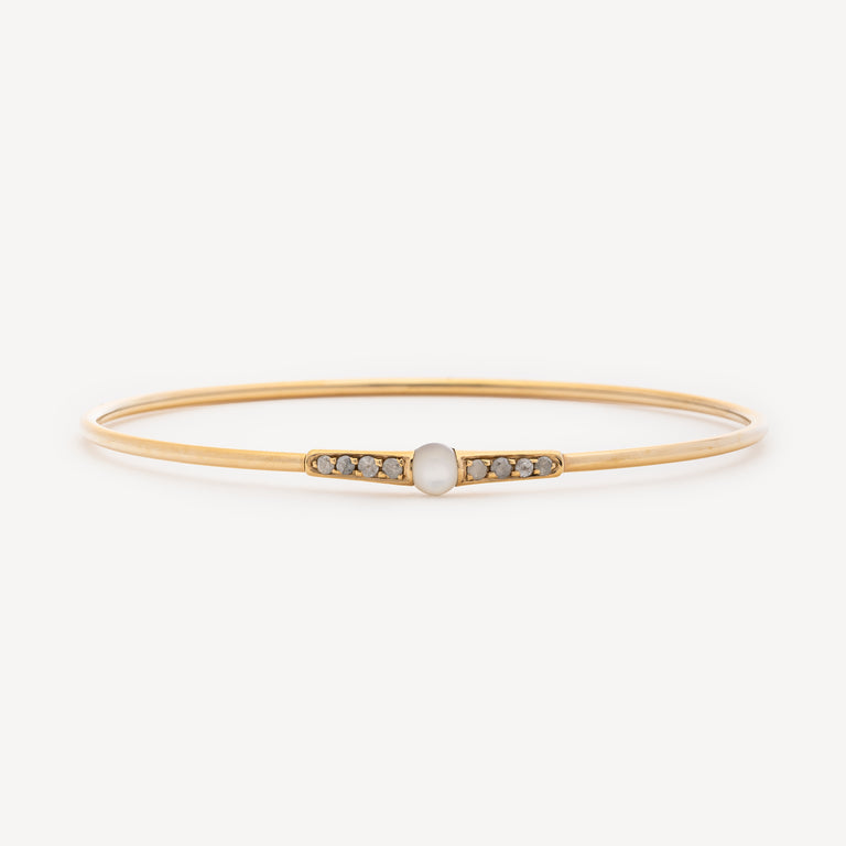 Bracelet en or jaune orné d'un diamant central et de petits diamants blancs.