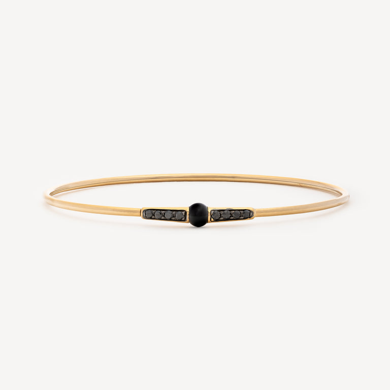 Bracelet en or jaune avec diamant noir central et petits diamants noirs.