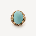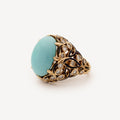 Bague en or rose avec turquoise centrale et diamants blancs. Turquoise abîmée côté intérieur de la bague.