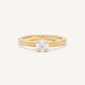 Cette bague solitaire classique est ornée d'un diamant exquis de 0,50 ct., serti sur griffes. L'extérieur de la bague présente une surface cannelée et profilée à la main, tandis que l'intérieur de l'anneau et la monture sont polis.