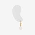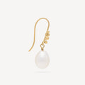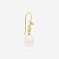 Ce bijou est une interprétation saisissante de la boucle d'oreille perle classique. La perle est sertie sur une fine tige décorée de sphères brillantes. La structure met en valeur la perle et crée un look exclusif, avant-gardiste et classique.
