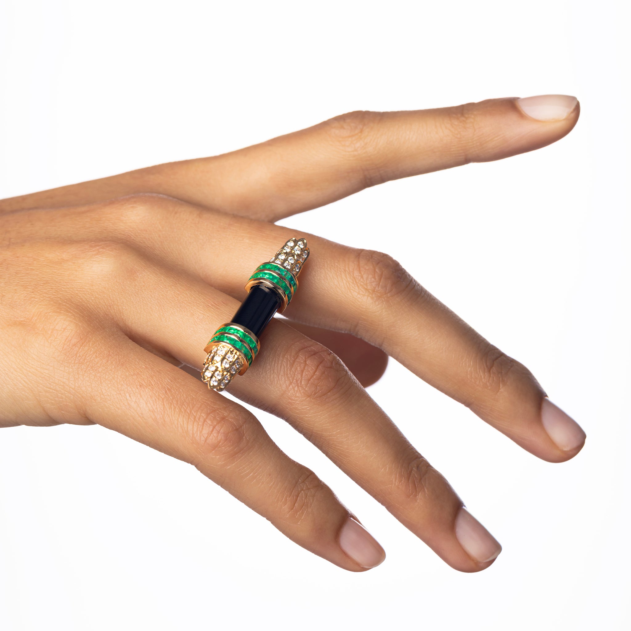 La bague City Icon en or jaune est une création Mirari qui incarne l'élégance urbaine et bohème. Cette pièce sophistiquée associe l'émeraude et les diamants blancs brillants, montés sur une structure noire et qui capture l'essence de la modernité. Symbole de perfection, le diamant amplifie les vibrations positives.