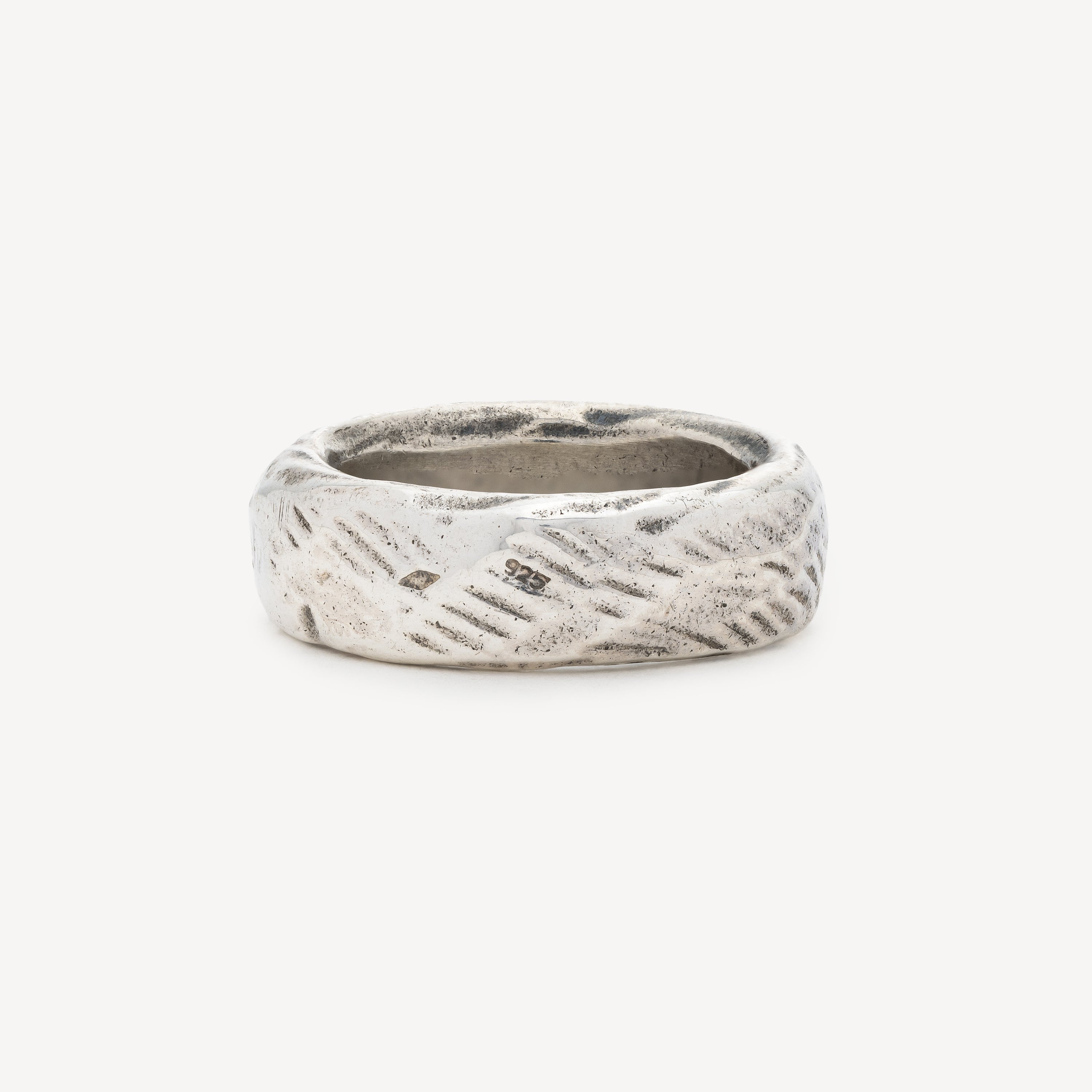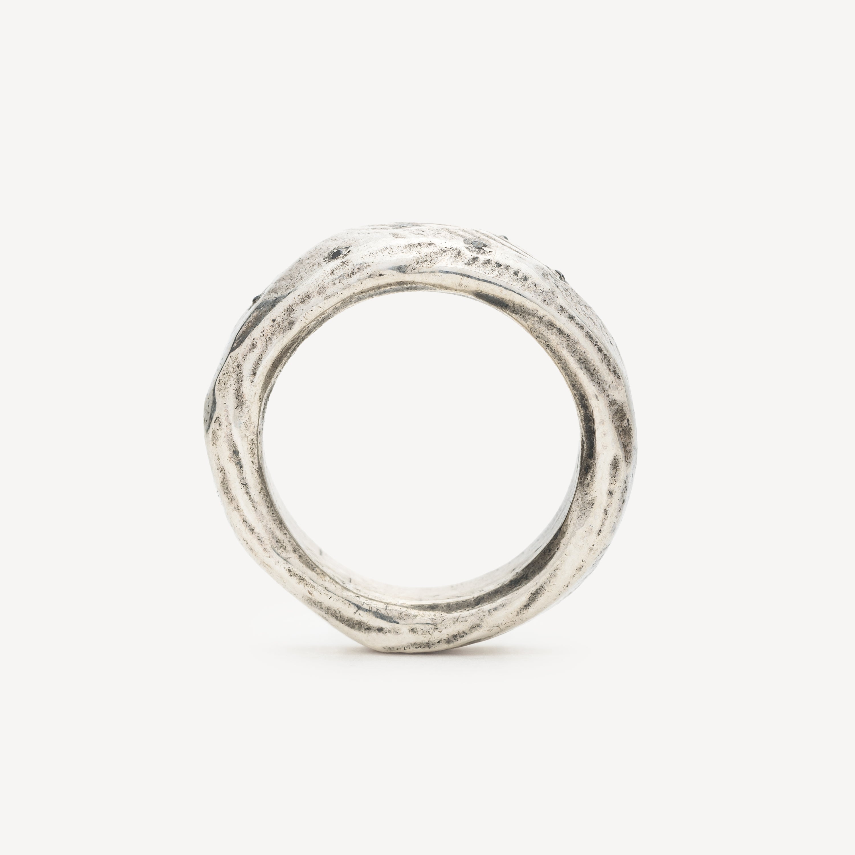 This silver ring is an elegant choice for any occasion. With its small black and white diamonds, it adds a touch of sophistication to your outfit.