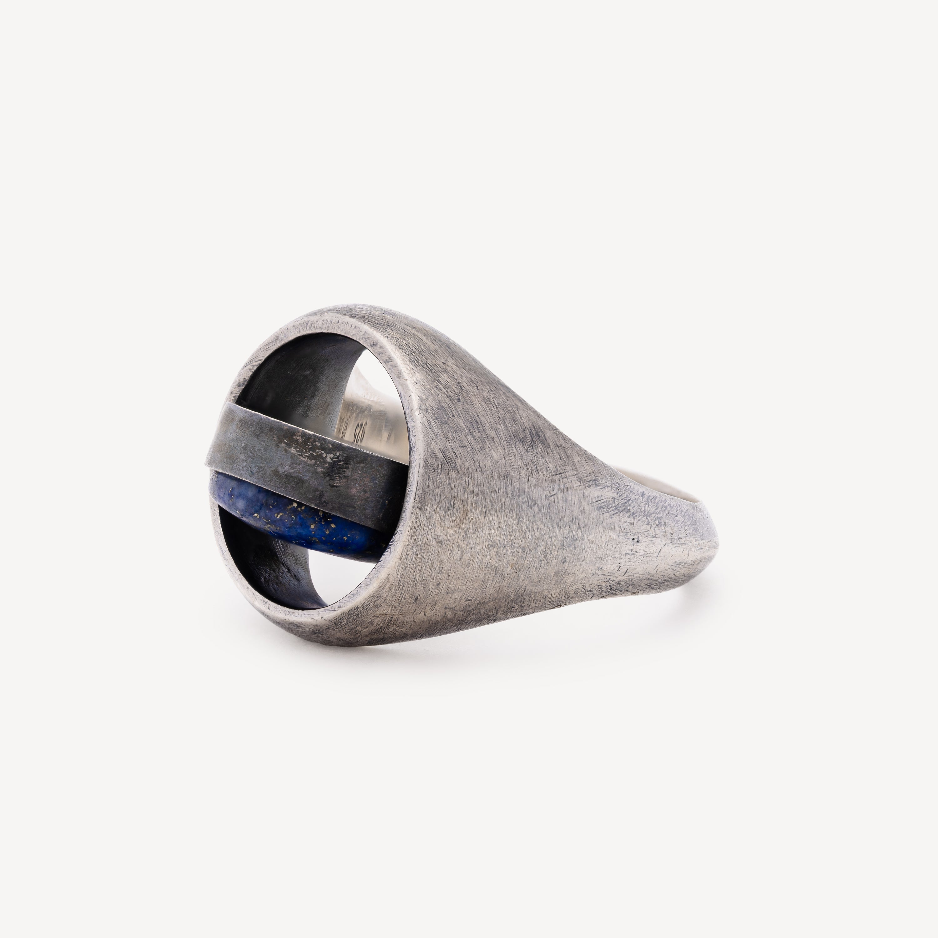 This ring crafted from solid silver is enhanced by a moving blue Lapis stone.