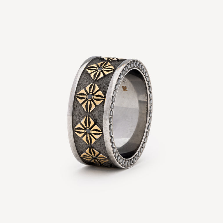 Star of Shamballa Ring Gold Black Diamonds