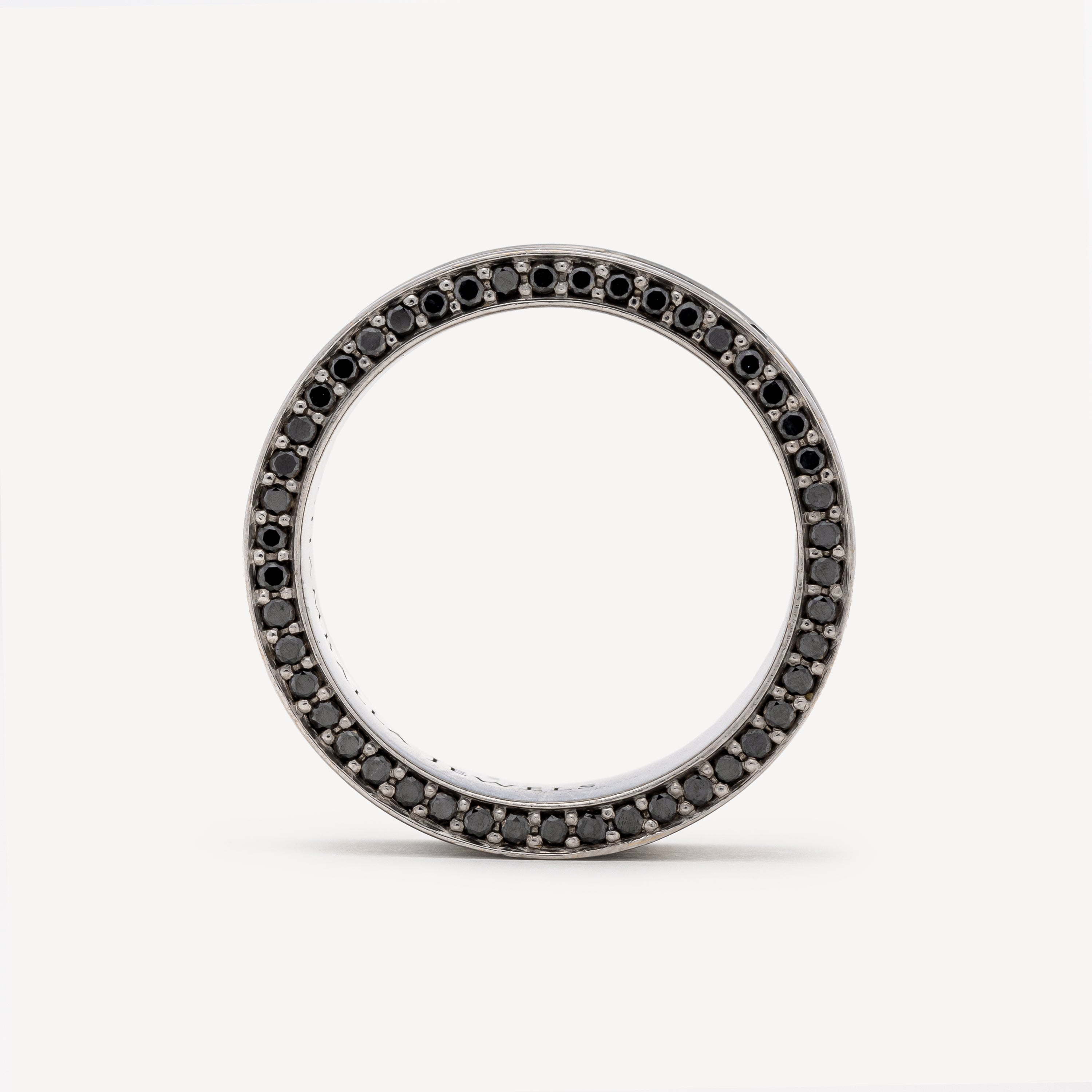 Sublime white gold ring adorned with the Shamballa logo and paved with black diamonds.