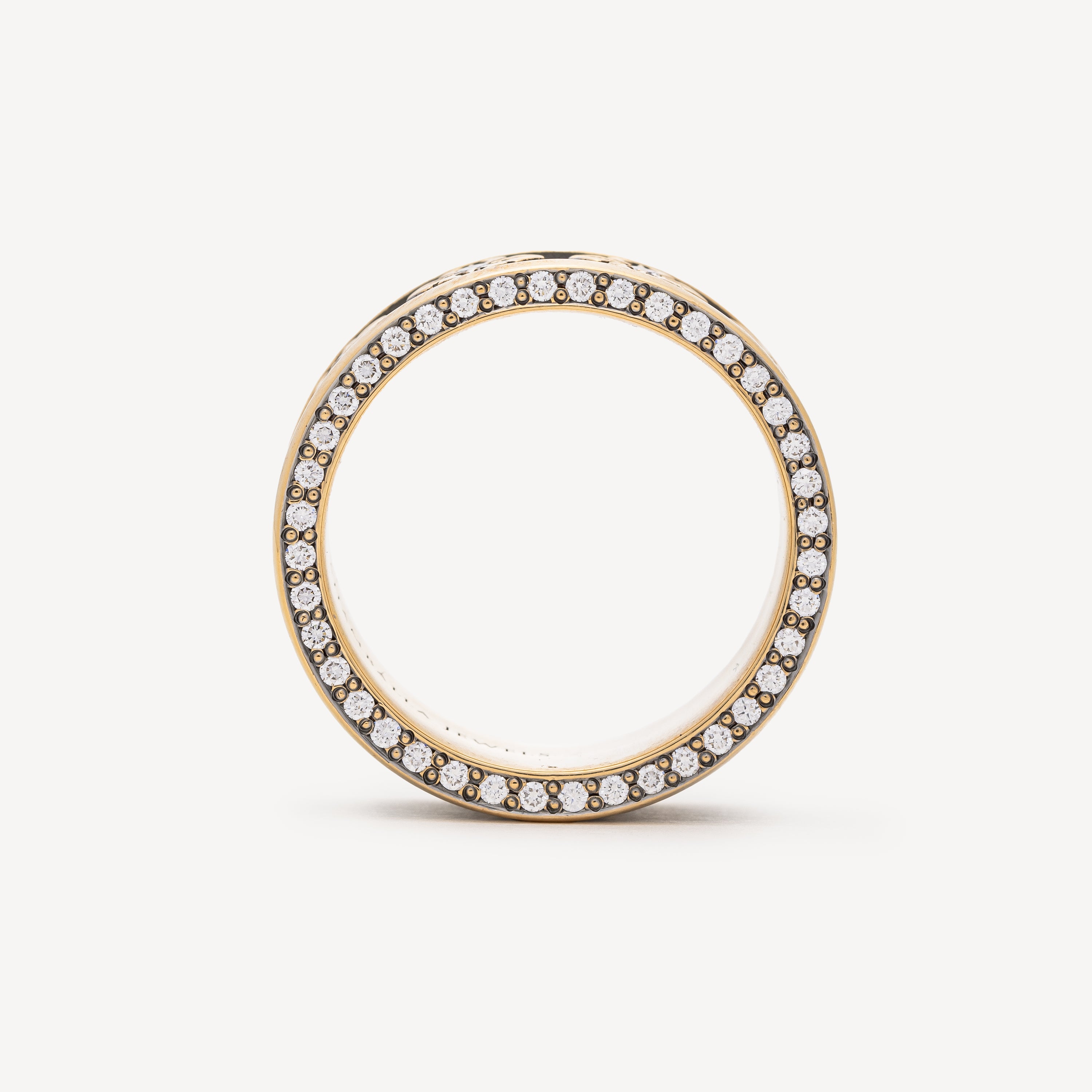 Sublime yellow gold ring adorned with the Shamballa logo and paved with white diamonds.