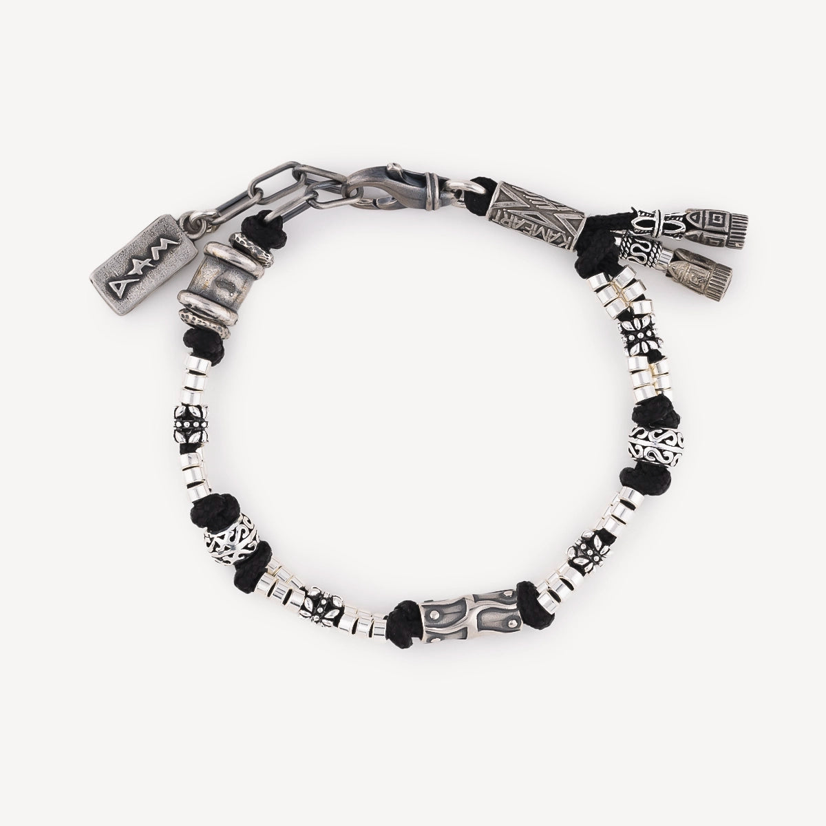 Découvrez le Bracelet Jacob de la Maison Kameart. L’argent, lumineux et sincère, rencontre la profondeur du cordage noir dans un dialogue authentique. Pensé comme un bijou de caractère, il se porte près de la peau et accompagne chaque geste, racontant une histoire de force tranquille.