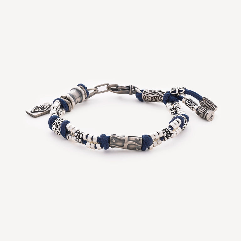 Découvrez le Bracelet Jacob de la Maison Kameart. L’argent, lumineux et sincère, rencontre la profondeur du cordage marine dans un dialogue authentique. Pensé comme un bijou de caractère, il se porte près de la peau et accompagne chaque geste, racontant une histoire de force tranquille.