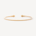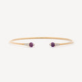 Yellow gold bangle bracelet adorned with two amethysts and white diamonds at the end of the bangle.