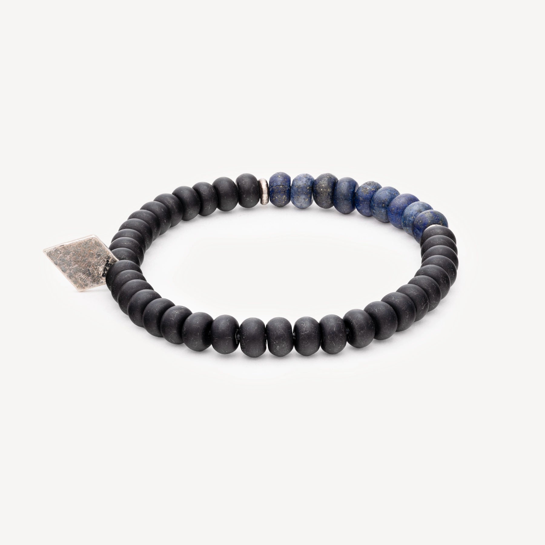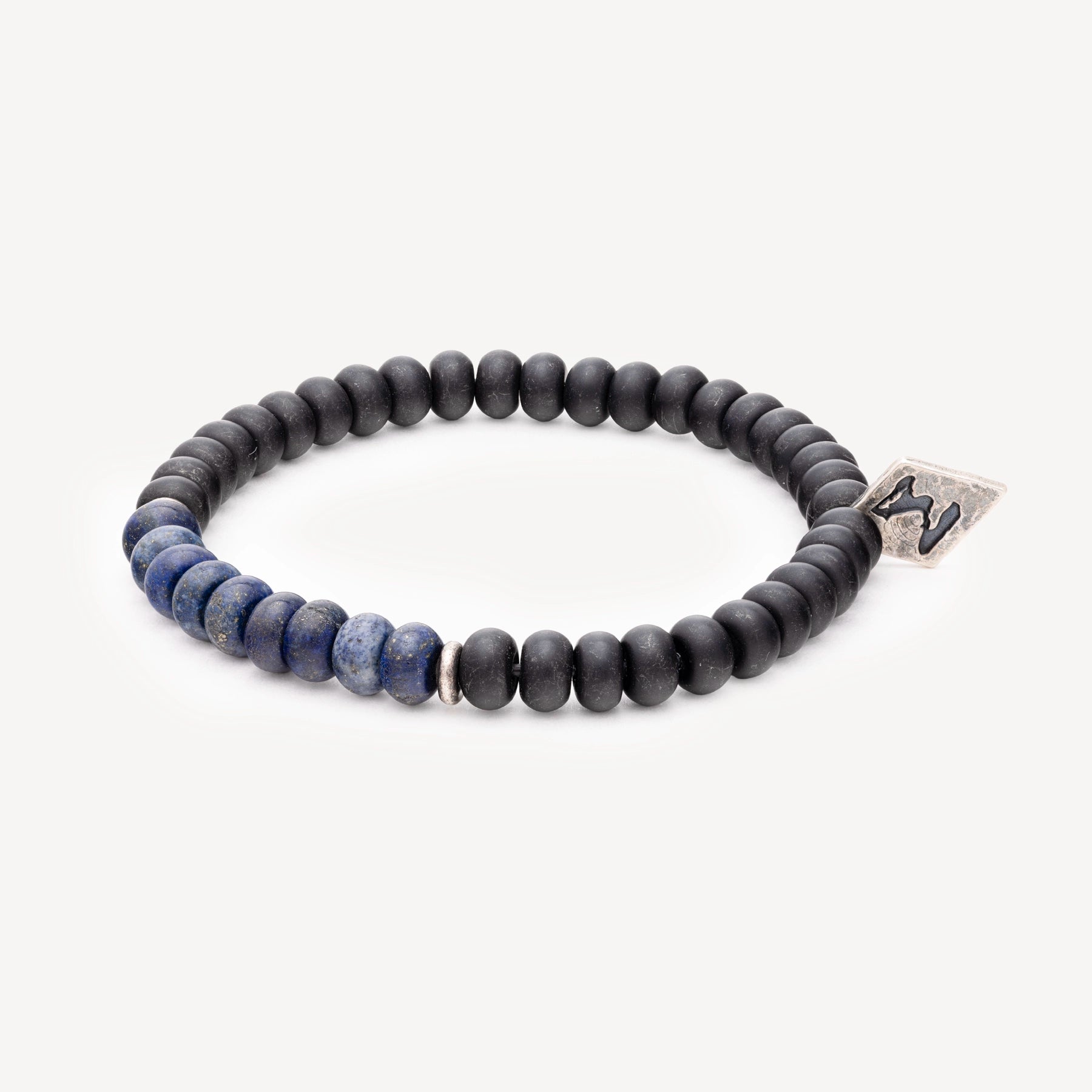 Le bracelet Perles Rondes Onyx de M. Cohen à enfiler marie l’intensité profonde de l’onyx noir à l’éclat céleste du lapis lazuli. Les perles rondes, soigneusement polies, créent un contraste entre la sobriété de l’onyx et le bleu subtilement constellé de reflets du lapis. Symbole de force et de protection, l’onyx s’unit à la sagesse et à la vérité associées au lapis lazuli, donnant naissance à un bracelet au caractère affirmé.