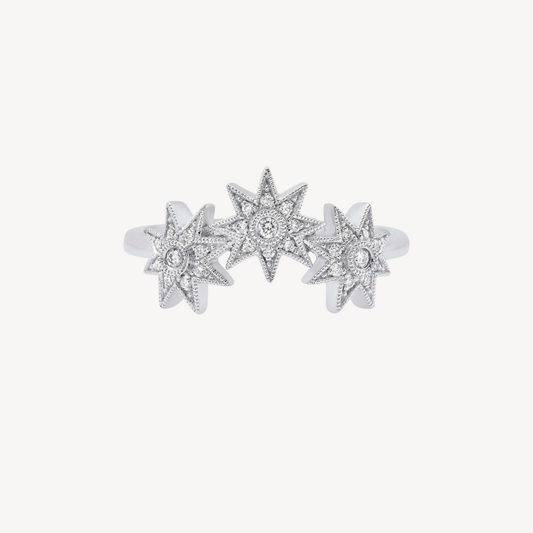 Ring aus 18-karätigem Weißgold mit drei Sternen, besetzt mit weißen Diamanten im Brillantschliff