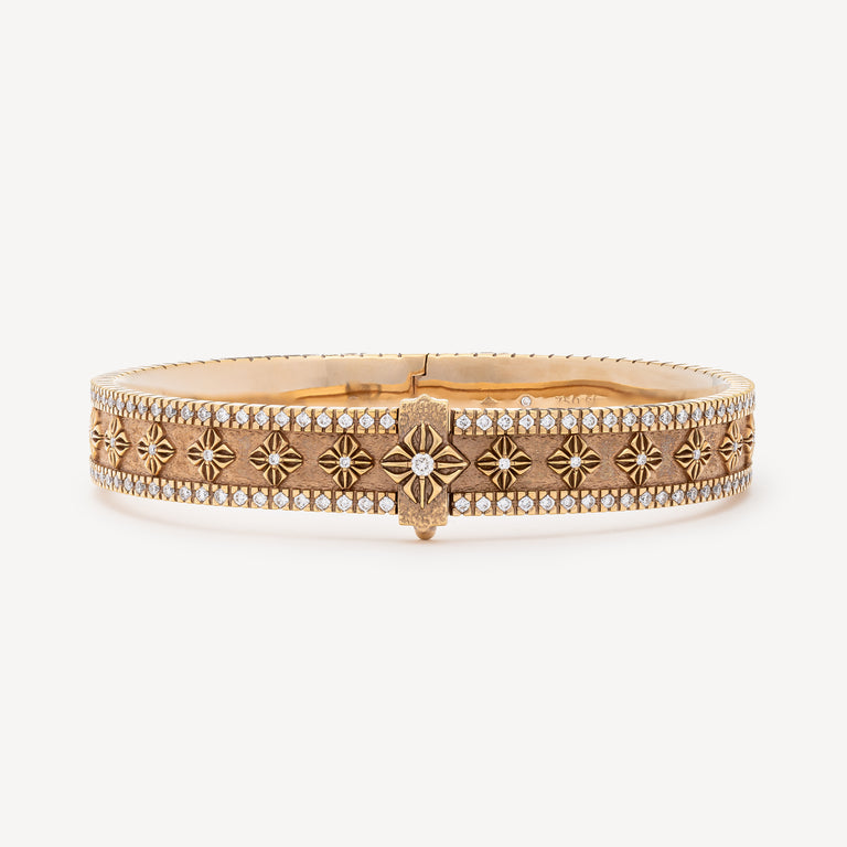 Elegant and refined, this thick rose gold bracelet is adorned with the Star of Shamballa and set with white diamonds, bringing a touch of timeless sparkle.