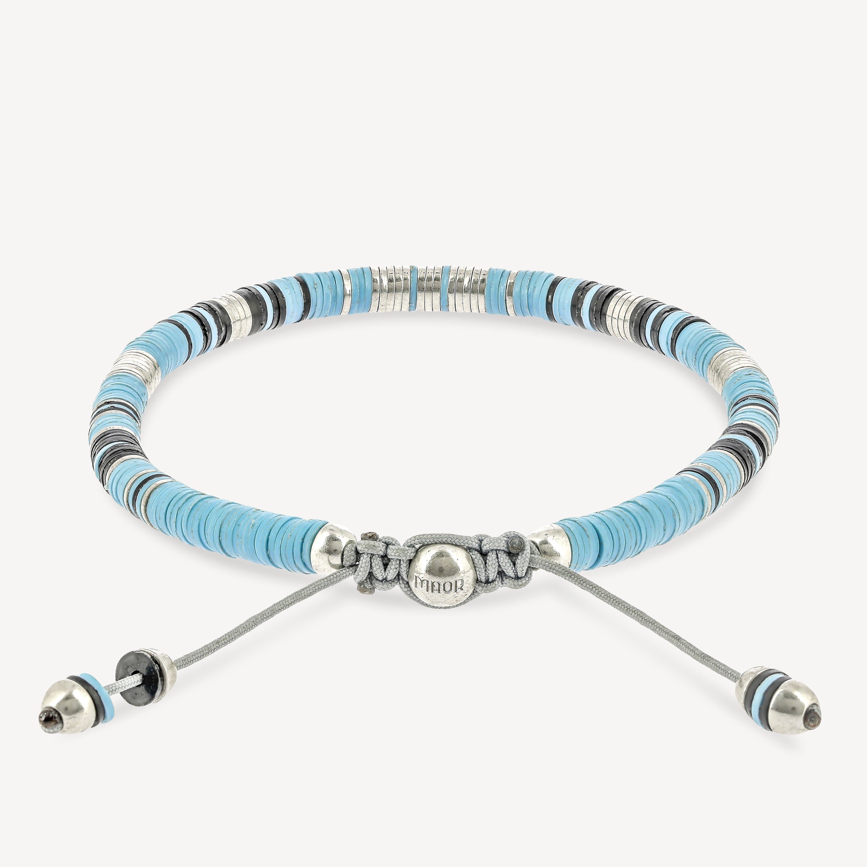 Rizon Perlen mit babyblauem Muster und silbernen Scheiben