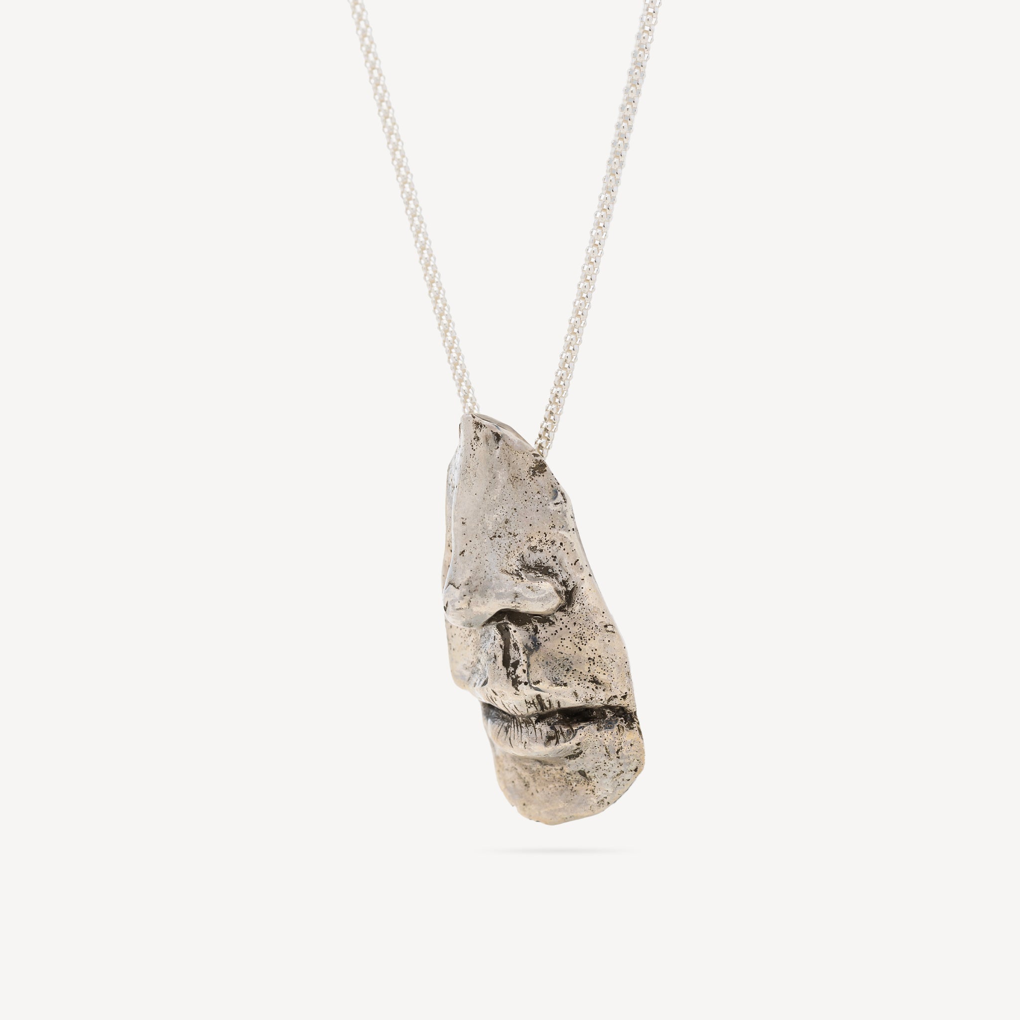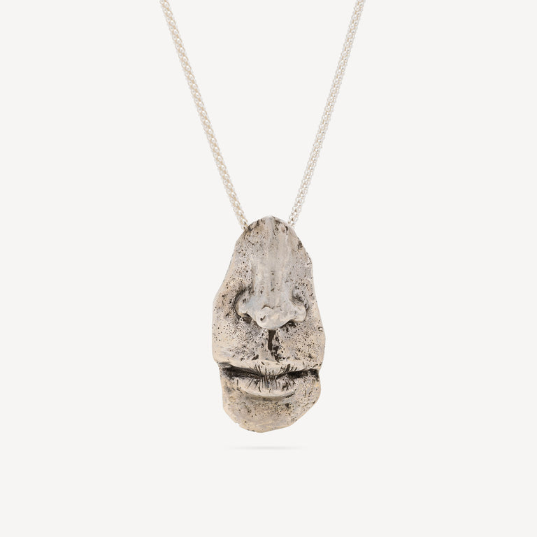 Le collier Visage de Milumino en argent joue avec l'art de la suggestion en révélant uniquement les traits essentiels, nez et bouche finement gravés en argent. Cette pièce minimaliste transcende la représentation classique pour offrir une interprétation moderne et énigmatique du visage. Un bijou contemplatif qui séduira les esprits raffinés en quête d'originalité et de profondeur artistique.