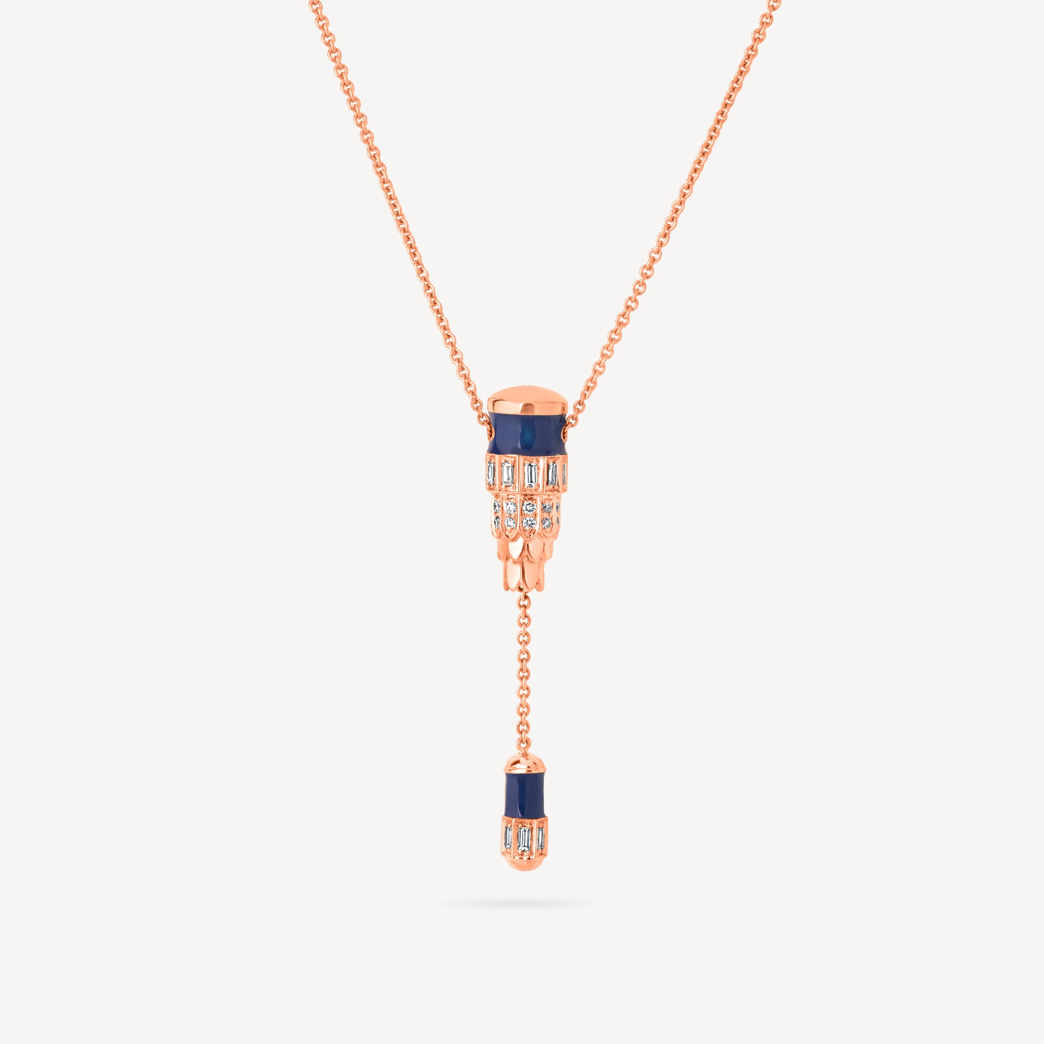 Le collier Empire Rondelle Pink de la collection Empire State de Mirari représente l'apogée du design joaillier contemporain. Son pendentif en or rose, serti de diamants brillants et finalisé par de l'émail noir d'une grande précision, incarne l'équilibre parfait entre modernité et intemporalité. Gardien de la lumière, le diamant protège et renforce l’esprit.