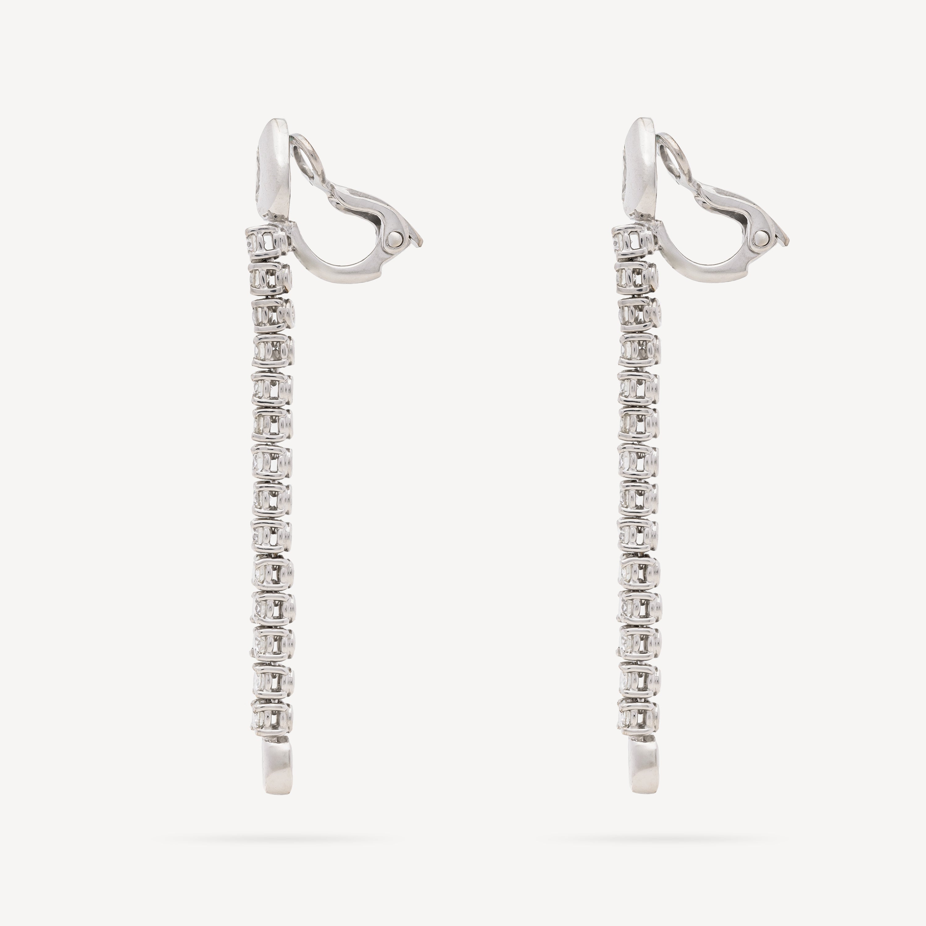 White gold dangling earrings paved with white diamonds.