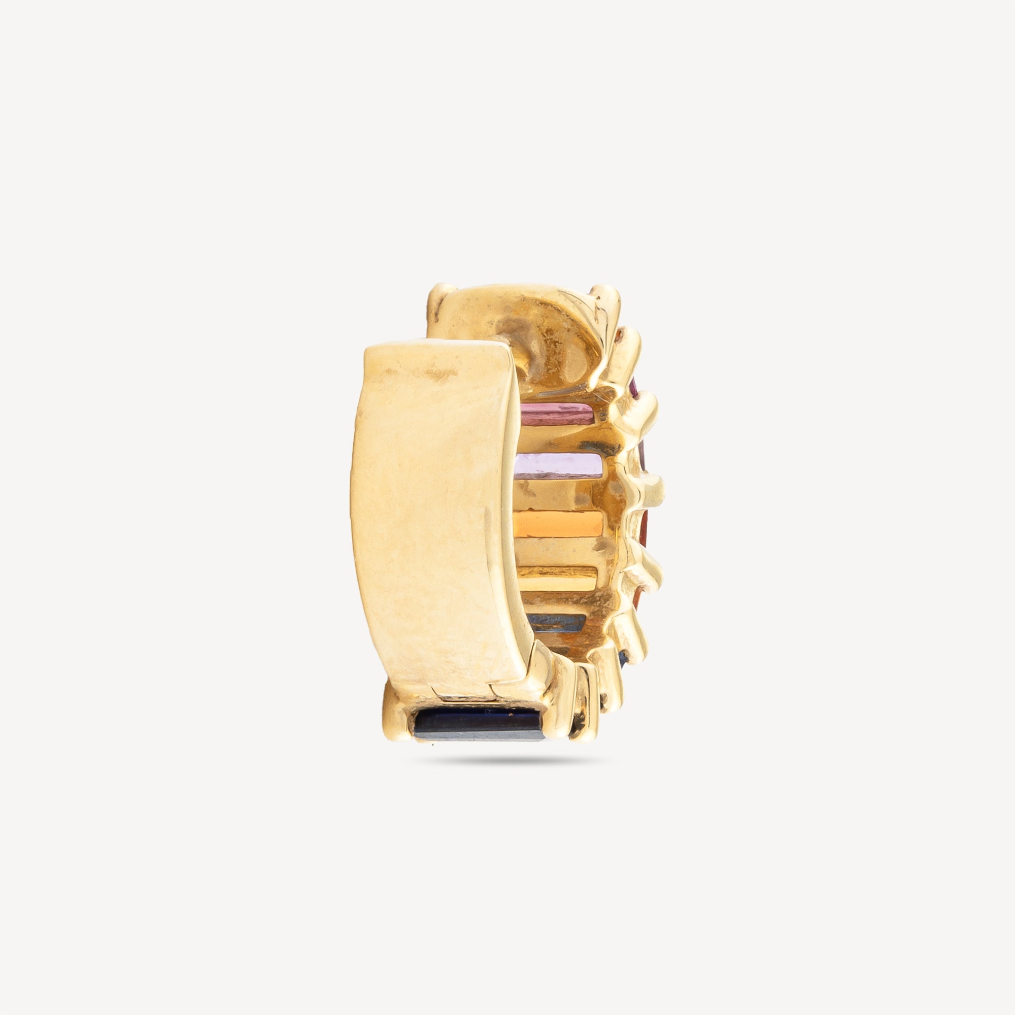 - Materialien: Gelbgold, mehrfarbiger Saphir