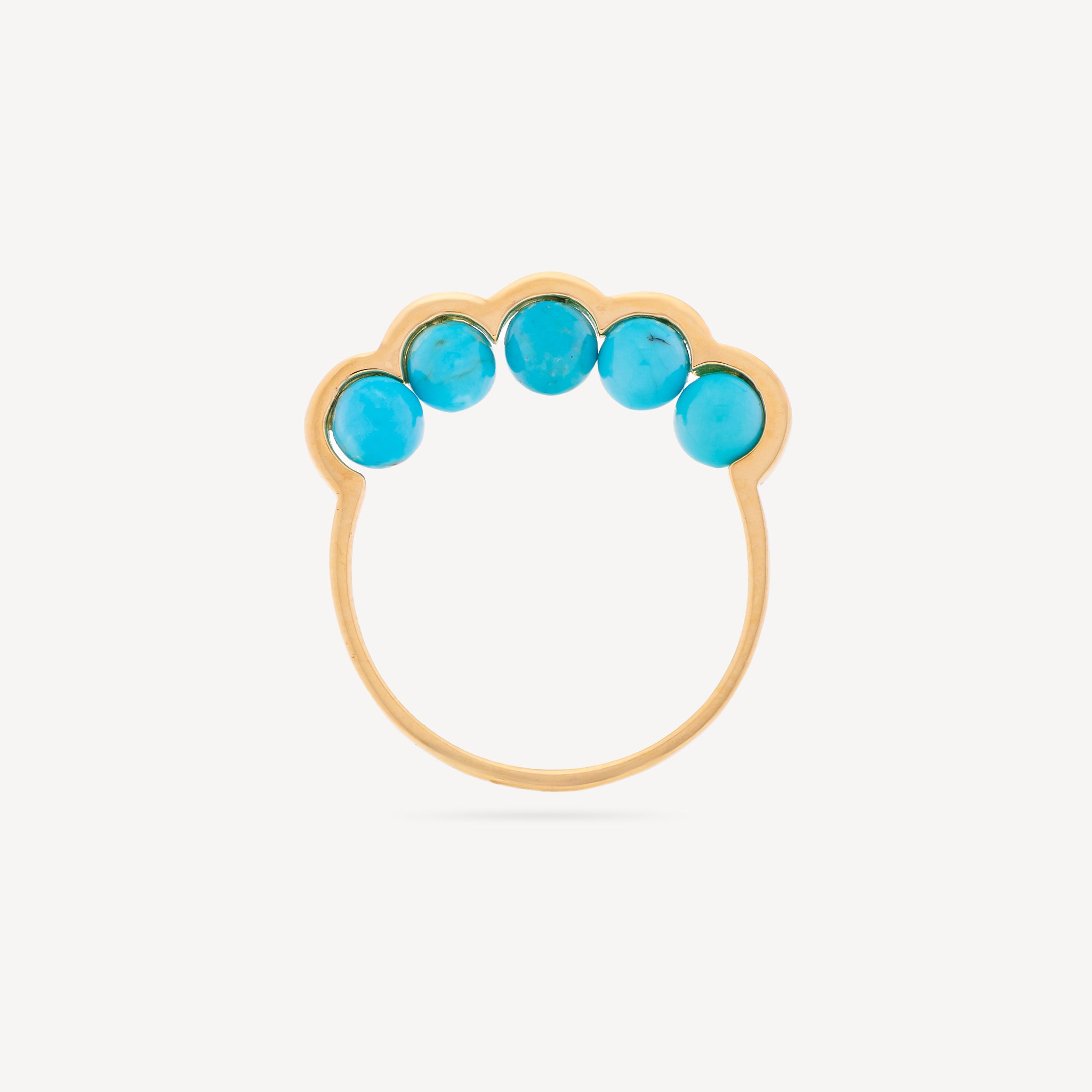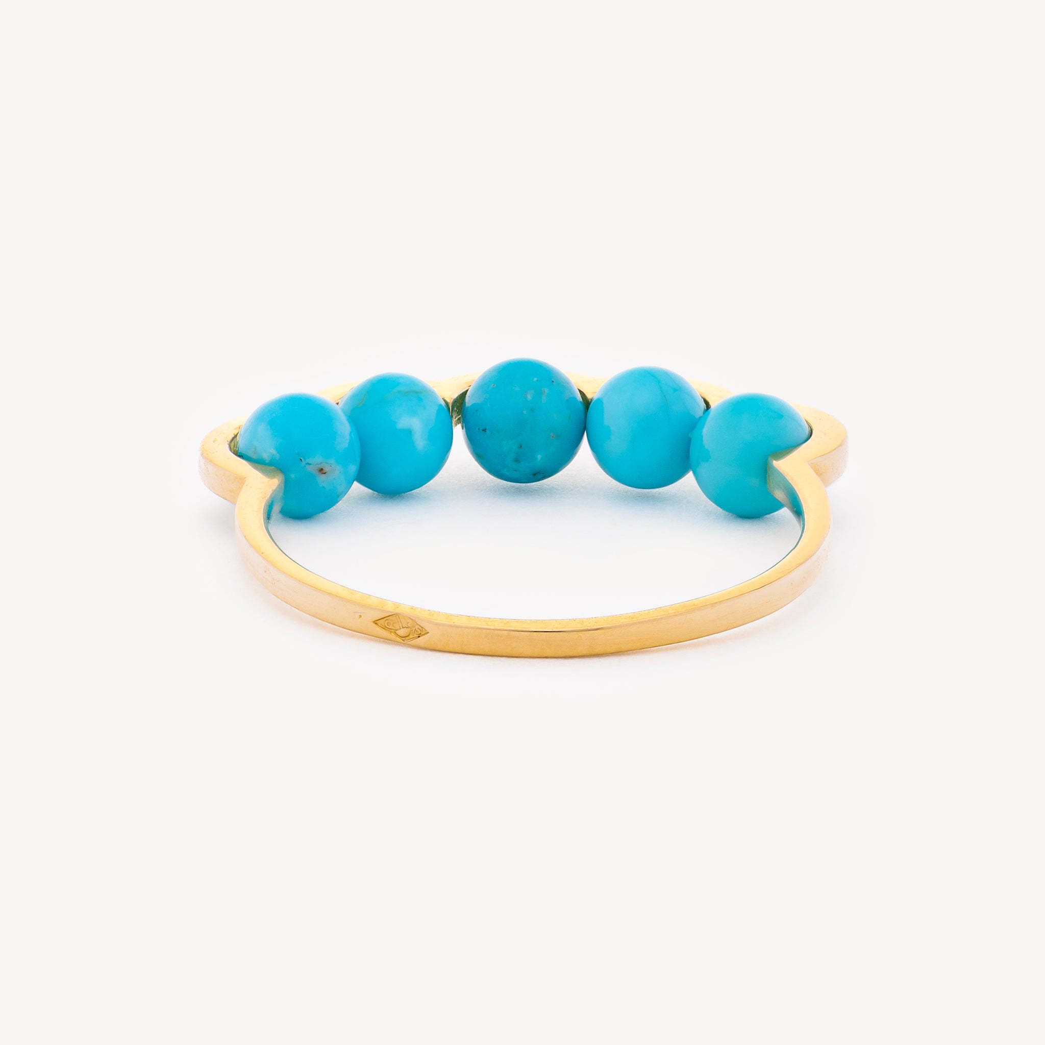 Cette bague en or jaune 18 carats de D1928 présente un design sophistiqué orné de cinq perles de turquoise, offrant un équilibre parfait entre éclat précieux et fraîcheur naturelle. Pierre d’apaisement et de protection, la turquoise favorise la communication sincère, équilibre les émotions et éloigne les énergies négatives.