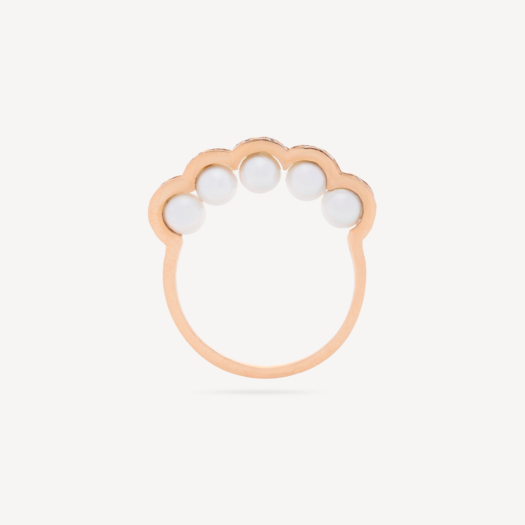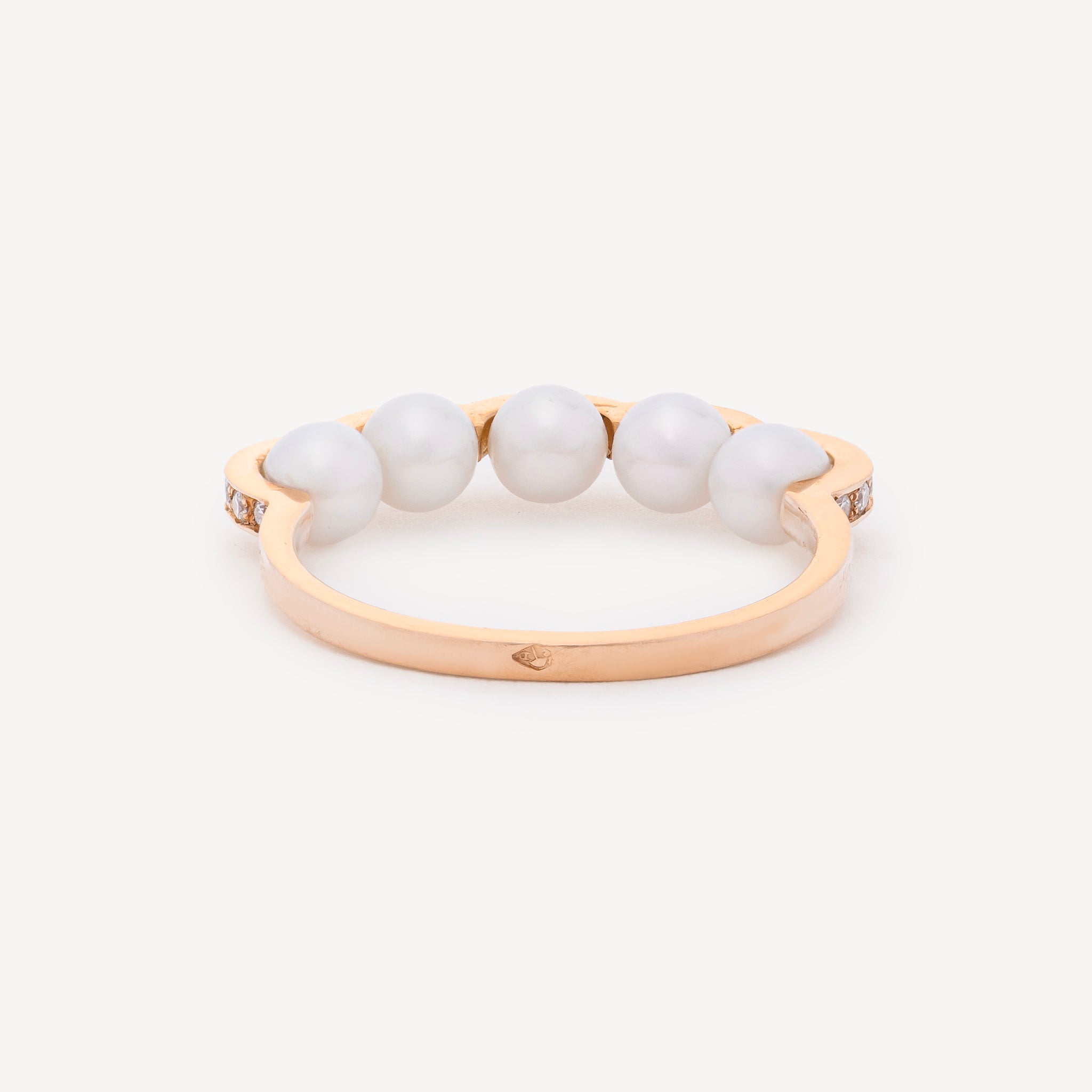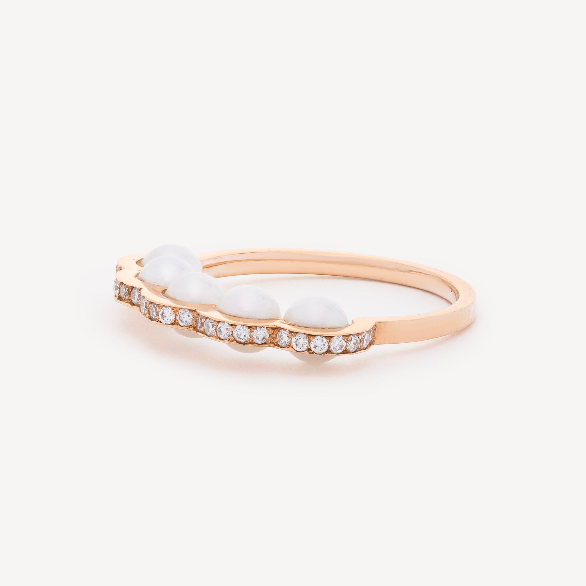 Bague Coco Beach Or Rose Diamants et Perles Blanches