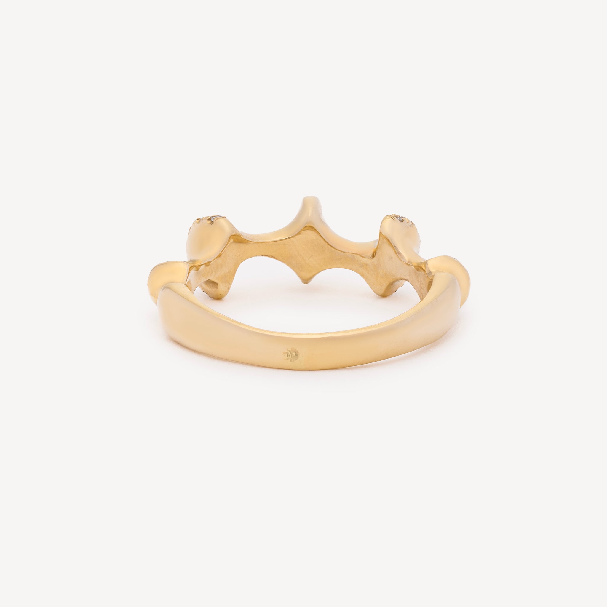 La bague Maly est inspirée des motifs envoutants des pays Orientaux. Des cercles d’or et de diamants s’intercalent, créant un ornement asymétrique. Pierre de pureté et d’énergie, le diamant blanc aide à équilibrer les émotions et à purifier l’aura.