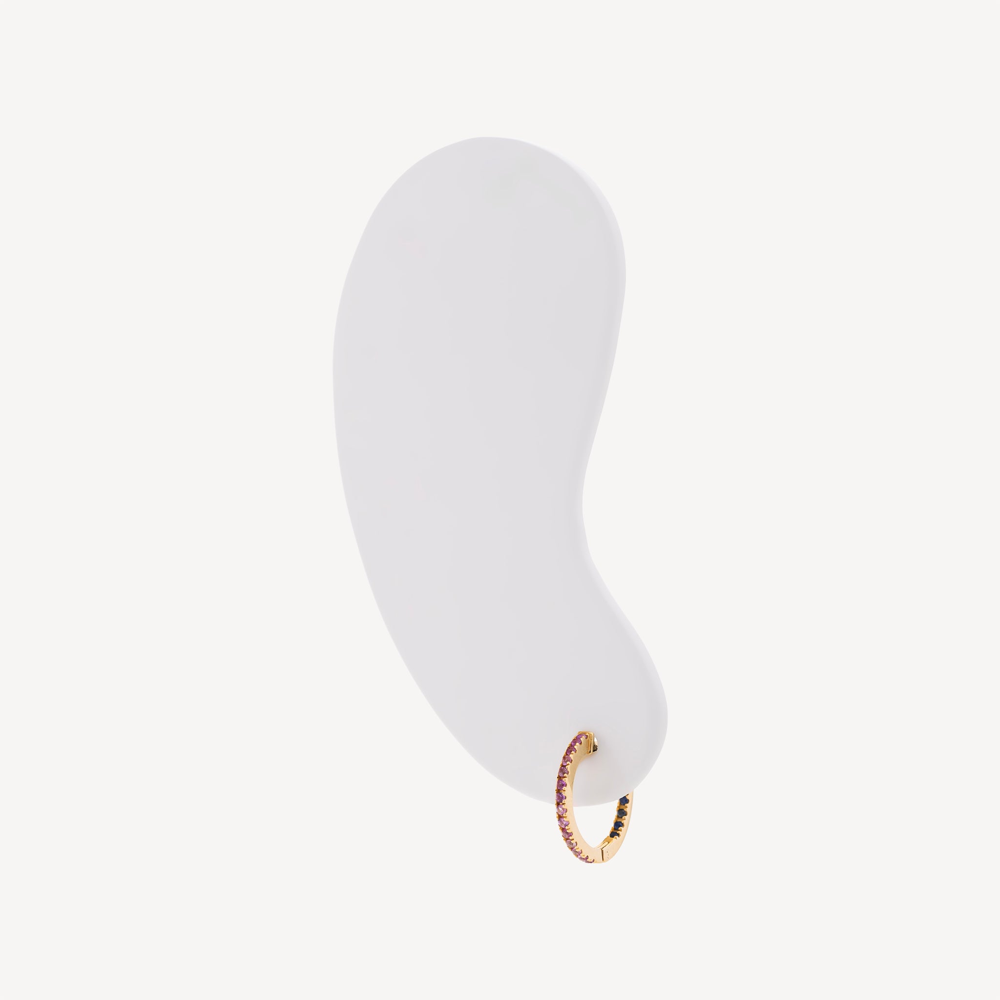Les créoles huggies en or jaune sont serties de saphirs roses et bleus étincelants et vibrants. Le saphir rose symbolise la sagesse et la sérénité et apaise l’esprit. Le saphir bleu, lui, ouvre le cœur et nourrit l’harmonie émotionnelle.