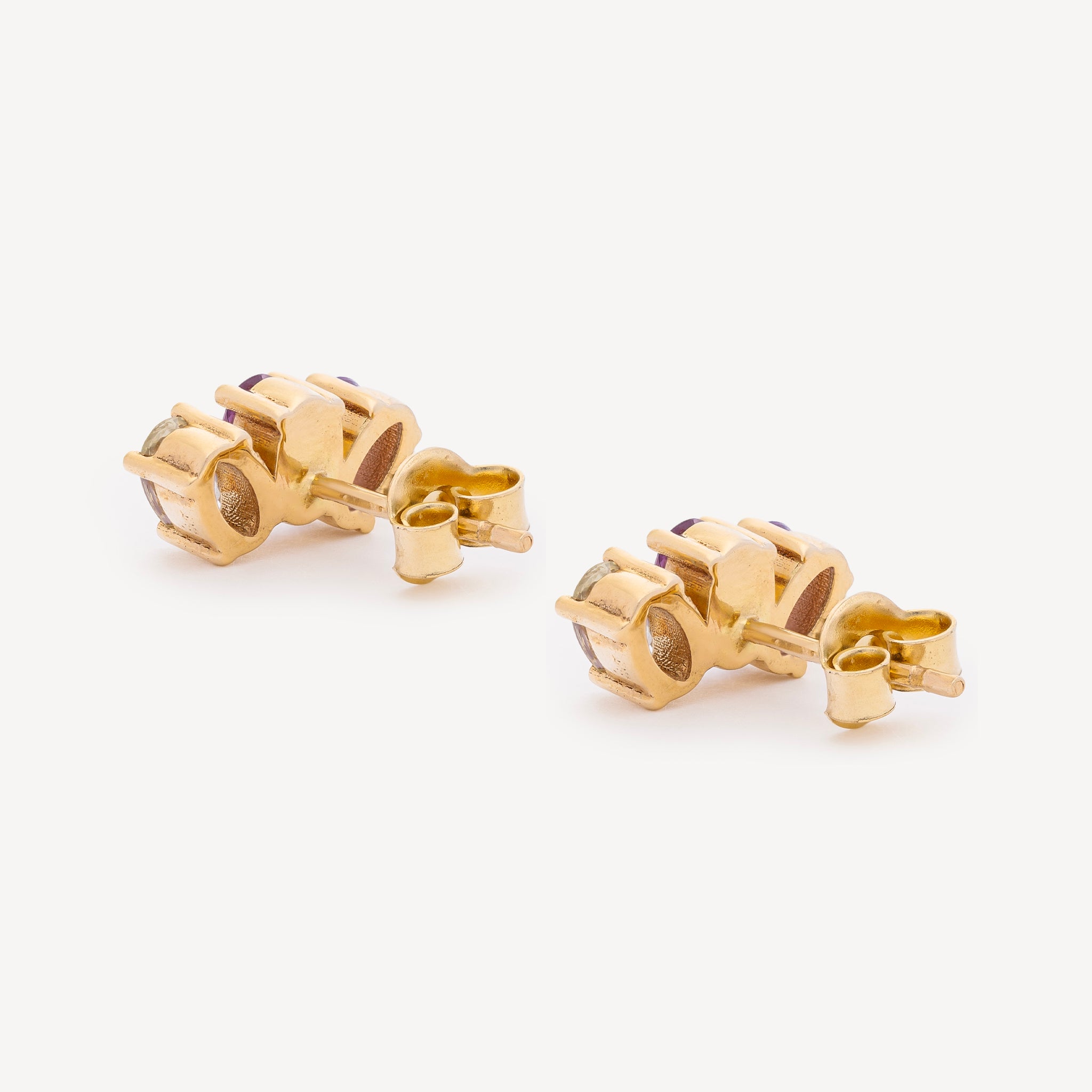 Les boucles d’oreilles Dumom sont confectionnées en or jaune, ornées de saphirs violets intenses et de saphirs blancs lumineux, jouant sur l’élégance du contraste et la délicatesse des pierres. Le saphir reflète image de vérité, de sagesse et d’harmonie.