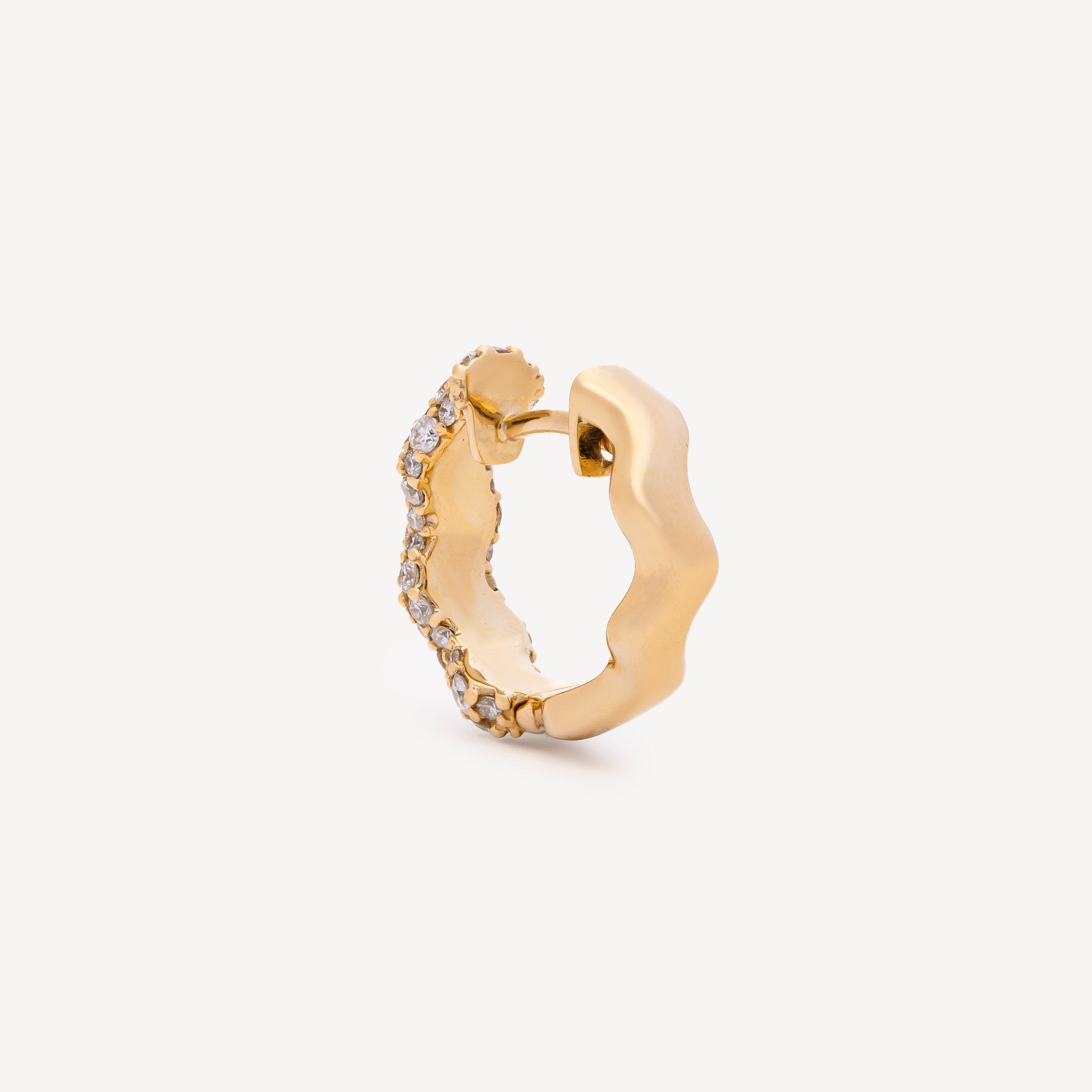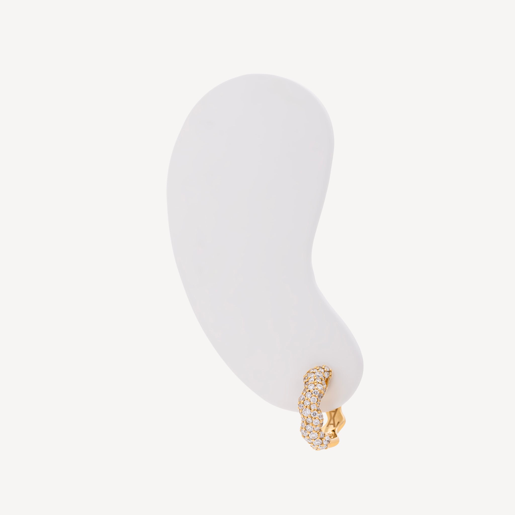 Cette créole est confectionnée en or jaune 18 carats et pavées de diamants. À la fois nostalgique et raffinée, cette créole est une ode à l’impermanence.
