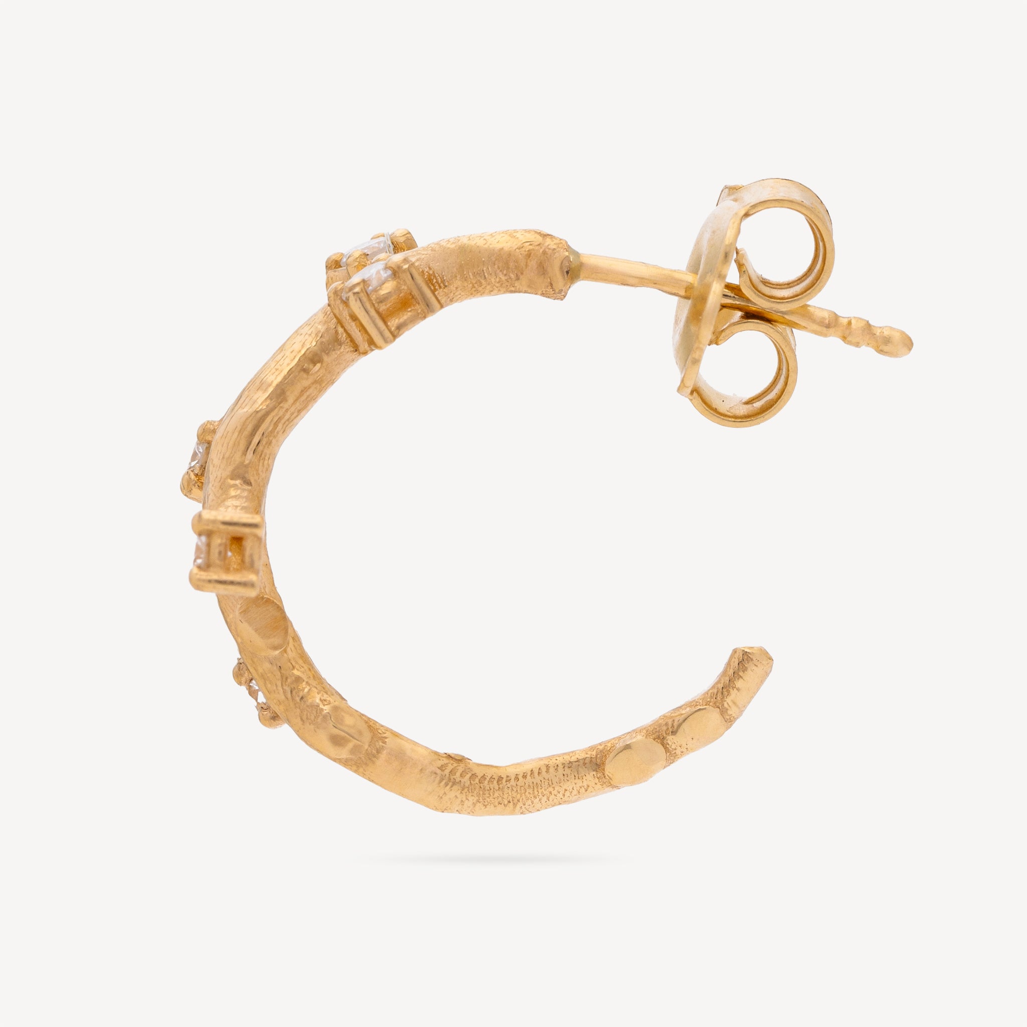 Inspiré de l’olivier, les diamants de la boucle d’oreille Olivier sont mis en éclat sur cinq branches, l’or martelé lui donne un effet vieilli. Pierre de pureté et d’énergie, le diamant blanc aide à équilibrer les émotions et à purifier l’aura.