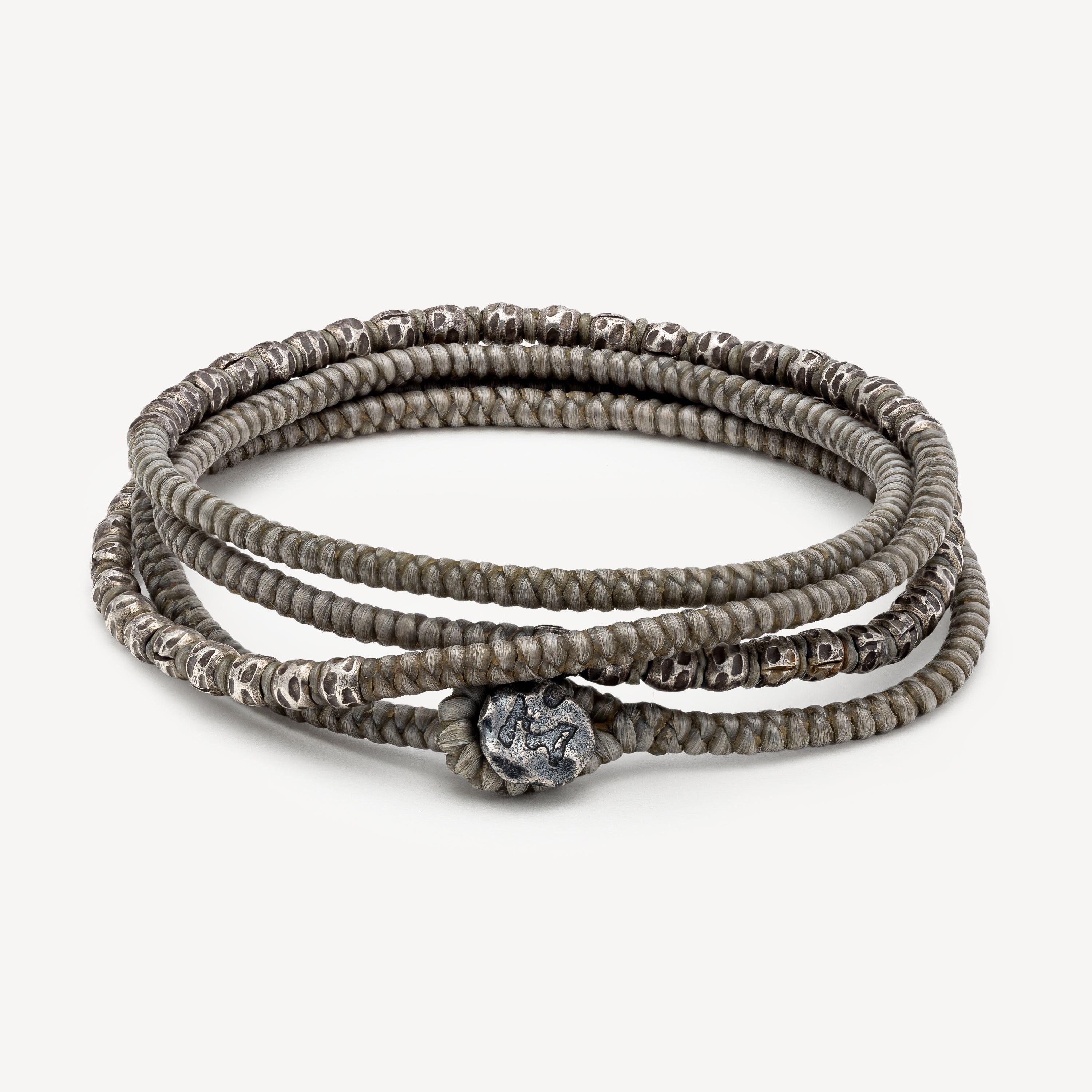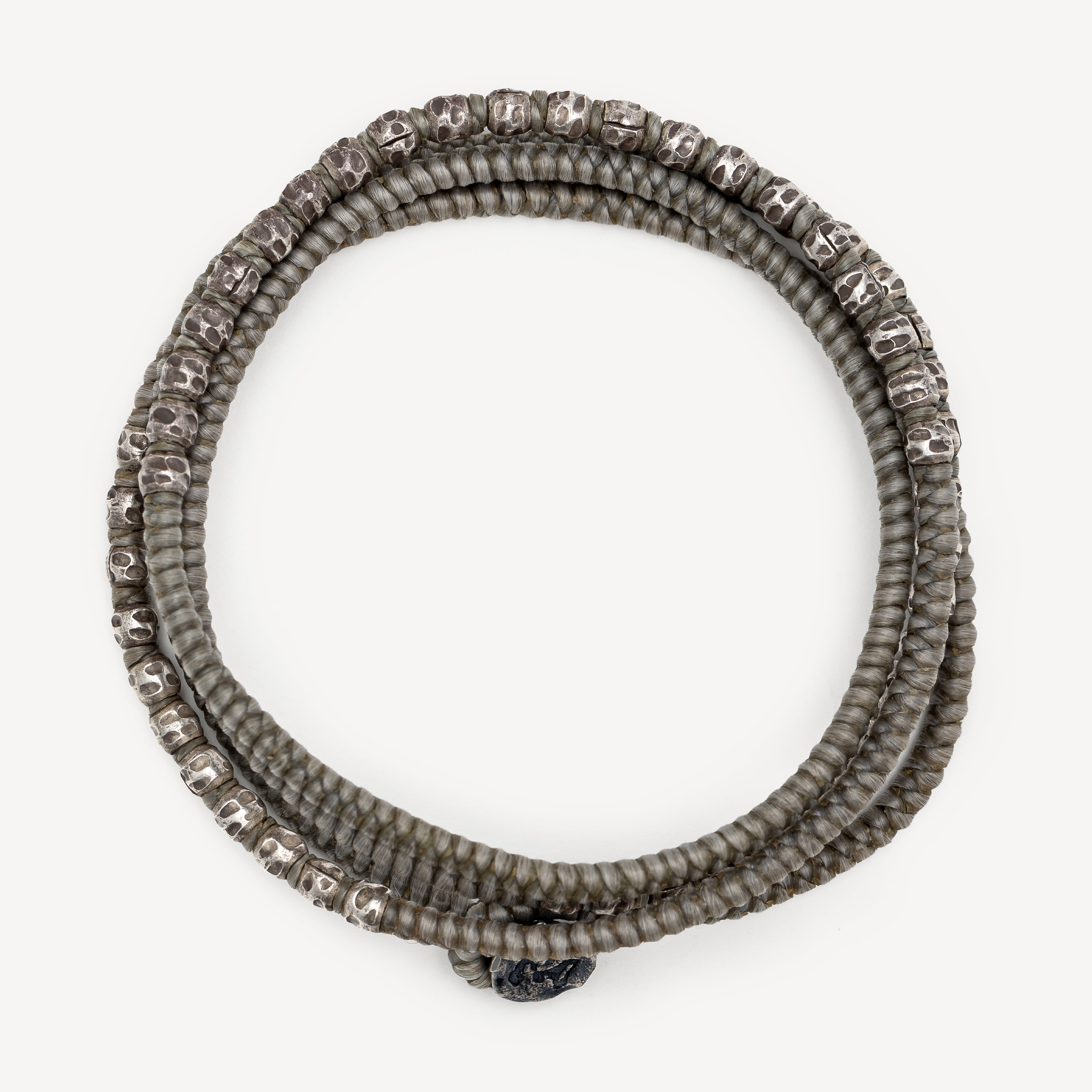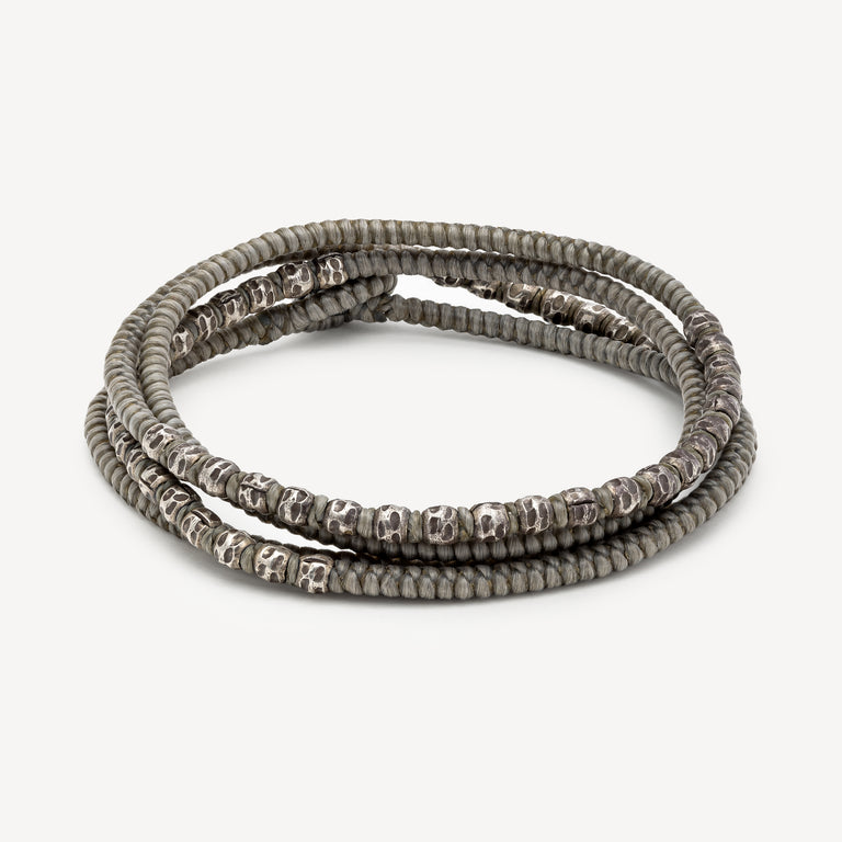 Bracelet Knotted 4 Wrap Grey Thai Hammered Bead
