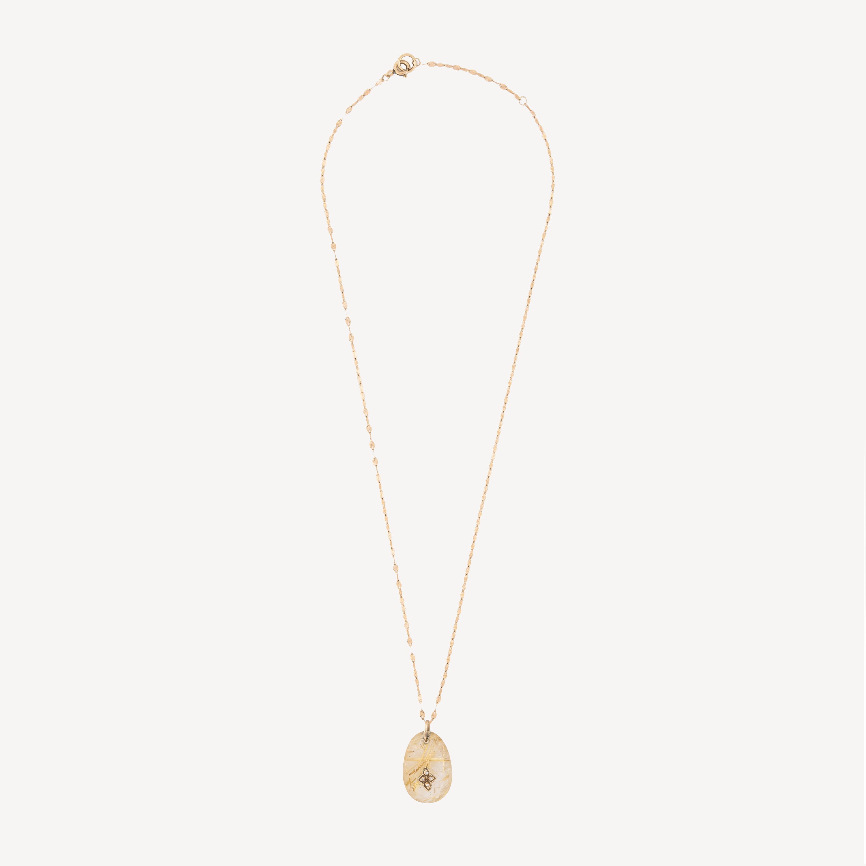 Ce collier en or avec pendentif en quartz rutile et croix ornée, allie élégance et raffinement.