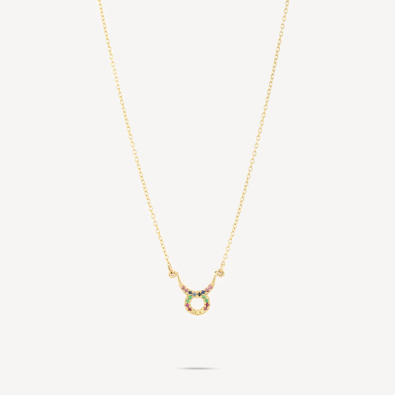 Halskette mit Sternzeichen Widder, mehrfarbige Saphire