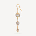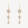 Boucles d'oreille pendantes en or rose composées de trois beads pavées de diamants blancs.
