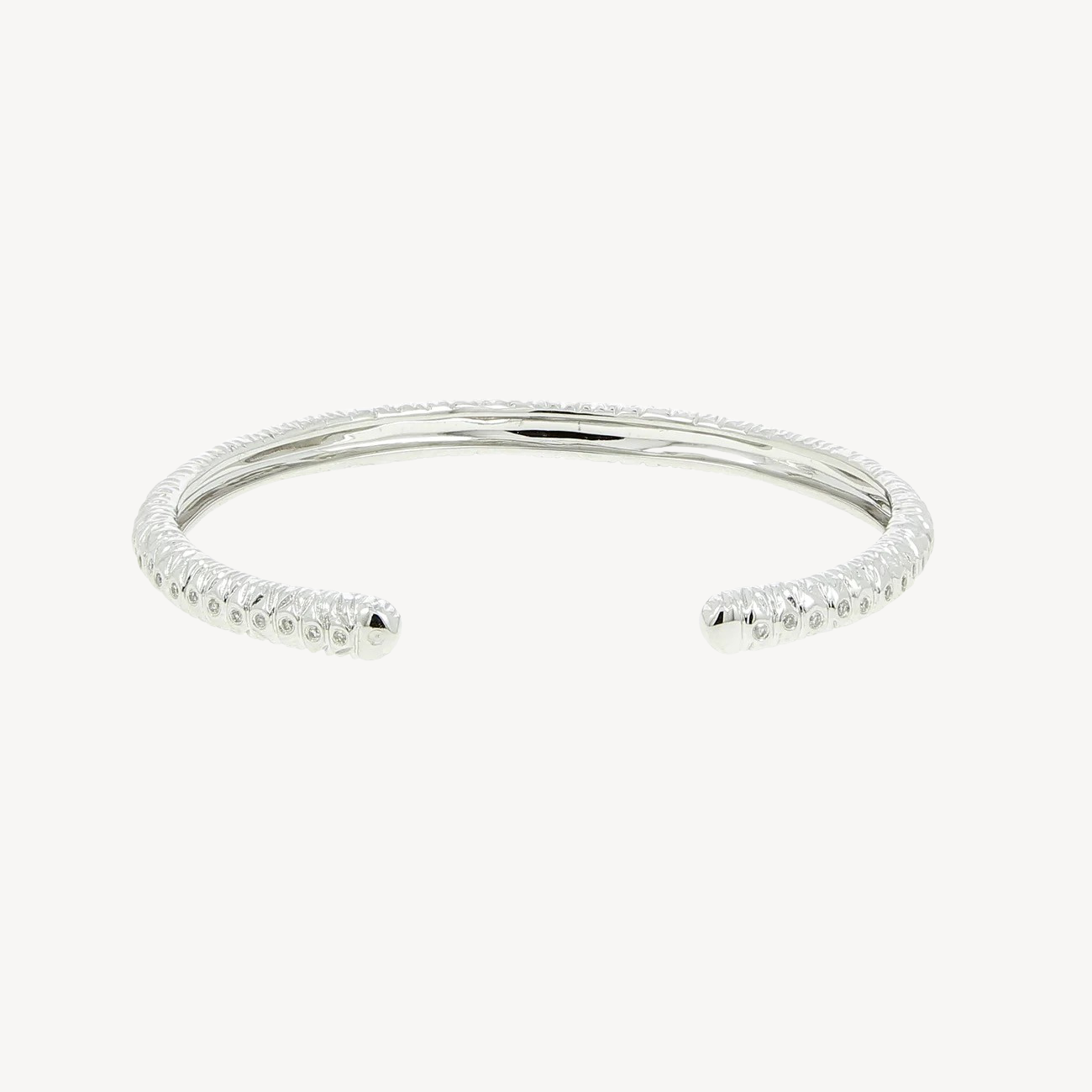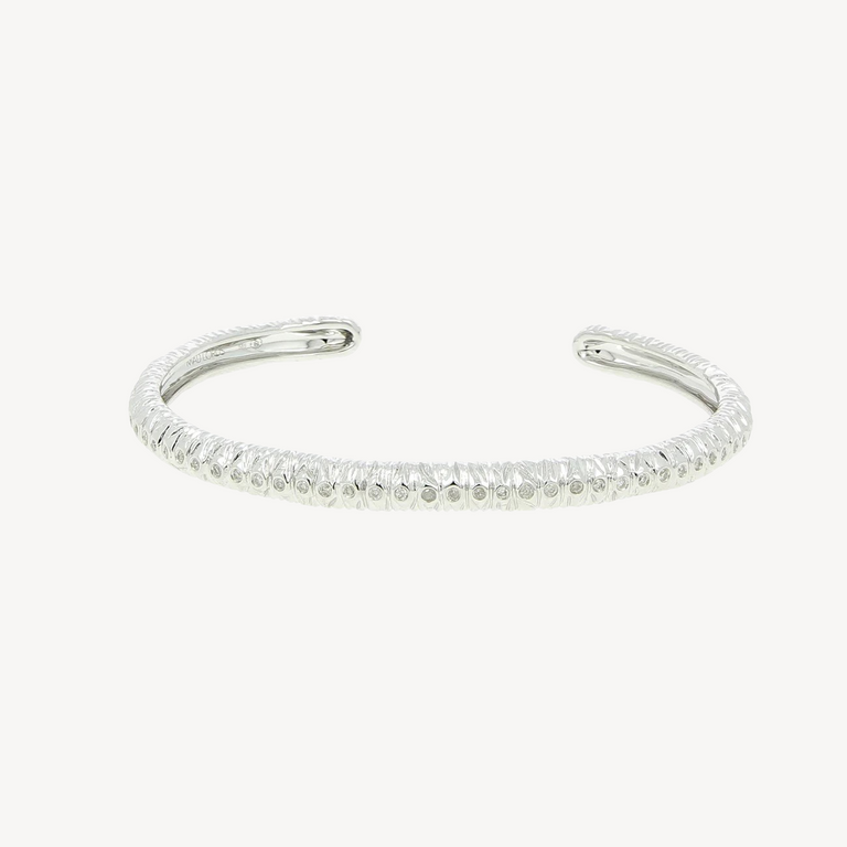 Dieser Armreif aus Weißgold ist mit reinweißen Diamanten besetzt. Inspiriert von Shagreen-Häuten und Meerwasserleder spiegelt es die perfekte Harmonie zwischen der Menschheit und den sie umgebenden natürlichen Elementen wider. Das Weißgold dieser Version kann durch Rosé- oder Gelbgold ersetzt werden.