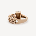Bague en or rose demi anneau, demi chaîne, avec rectangle central pavé de diamants blancs.