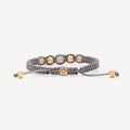 Bracelet monté sur un cordon tressé gris composé de 7 beads et 1 lock : 2 beads de 6.5mm en or rose serties de 2 diamants, 2 beads 6mm en or rose pavée de diamants, 2 beads en or rose serties de deux diamants, 1 bead de 8 mm en or rose pavée de diamants ainsi qu’un lock en or rose serti d’un diamant.