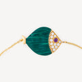 Bracelet en or jaune orné d’un poisson en malachite, diamants blancs et saphir violet gravé SJ sur le dessous.
