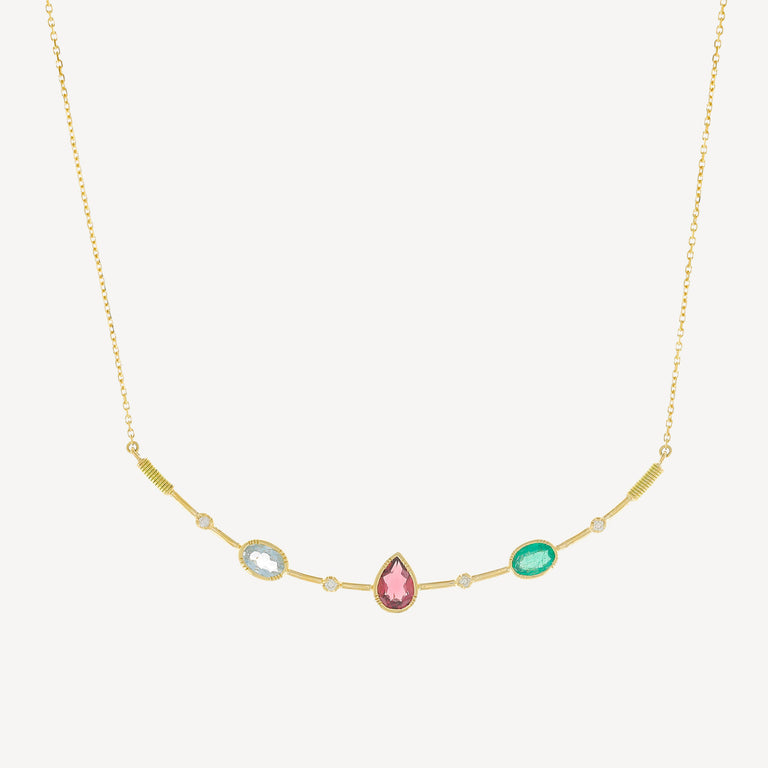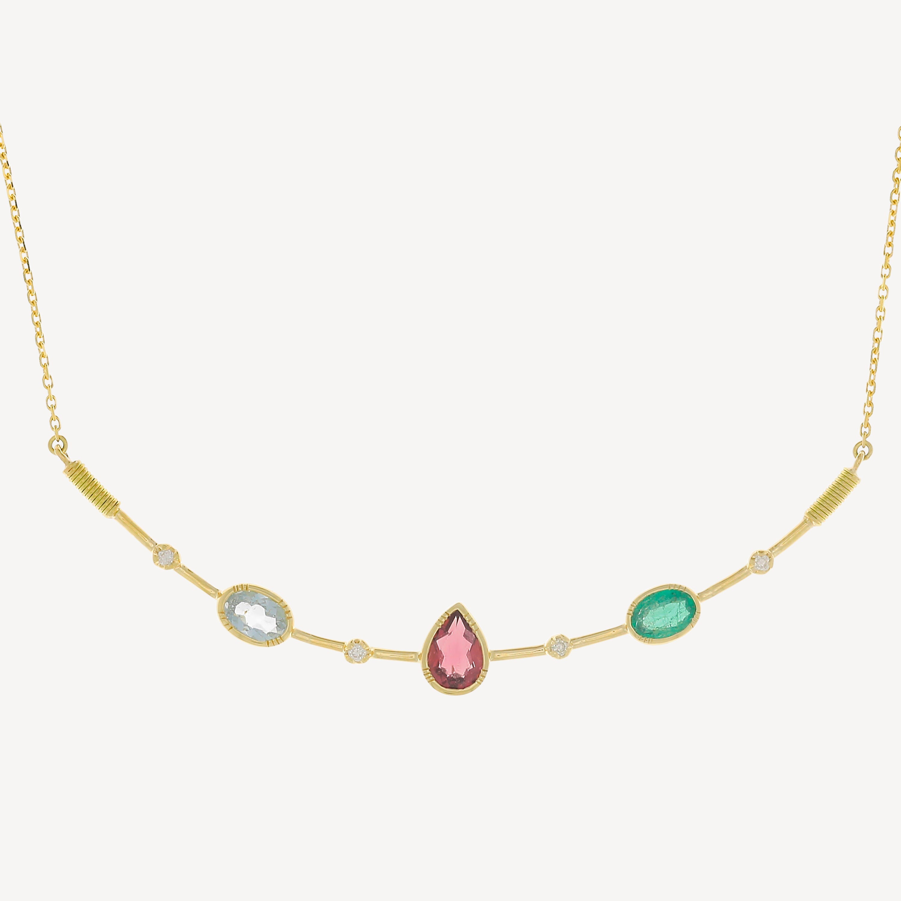 - Materialien: Gelbgold, weißer Diamant, Smaragd