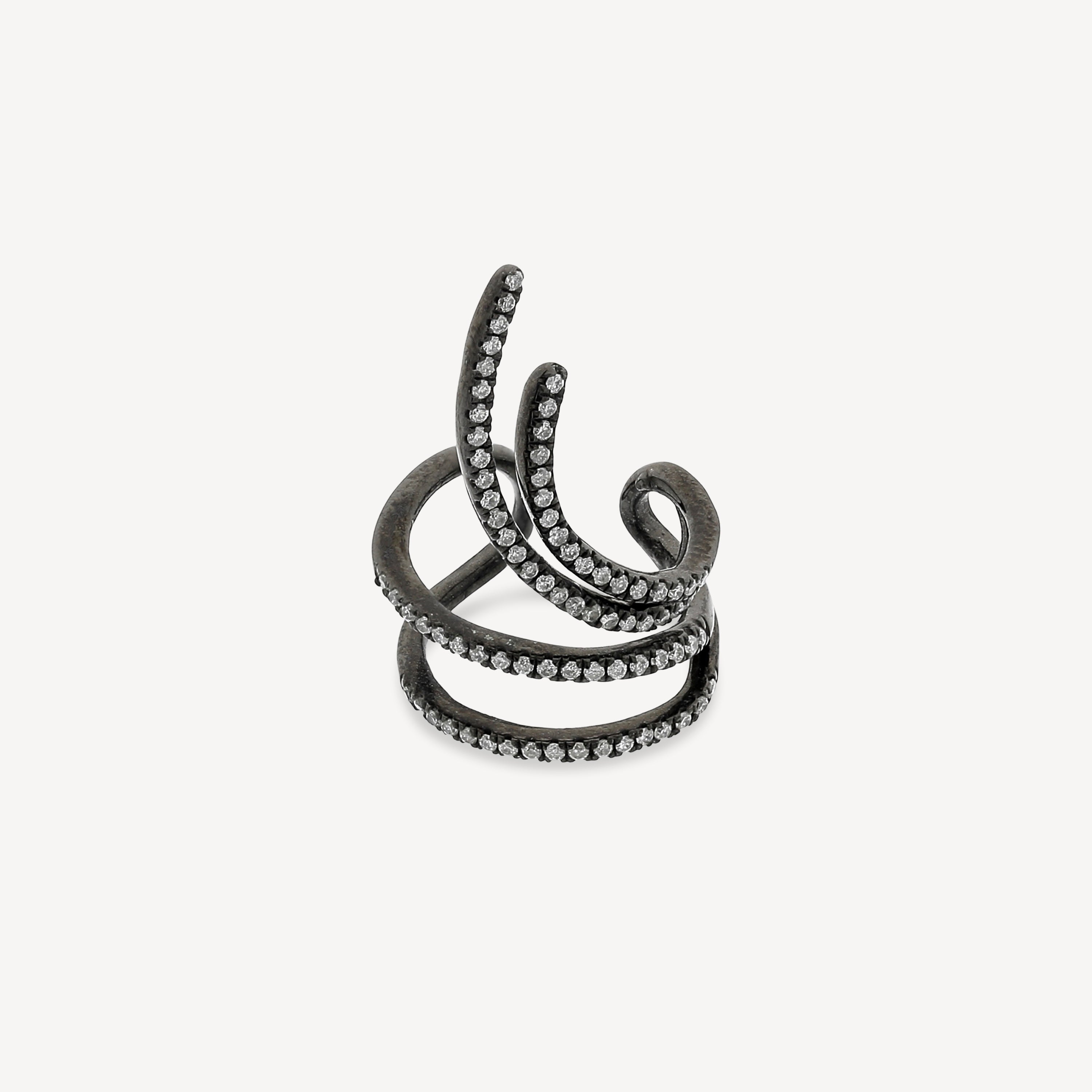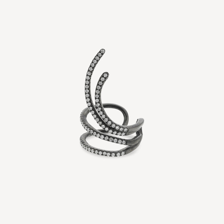 - Materialien: Weißer Diamant, oxidiertes Silber