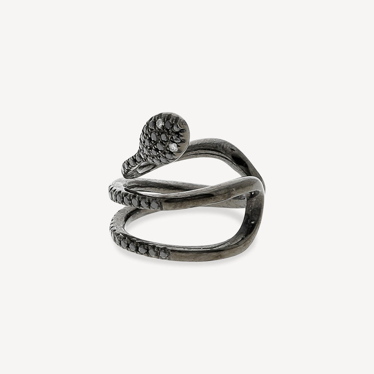- Materialien: Weißer Diamant, oxidiertes Silber