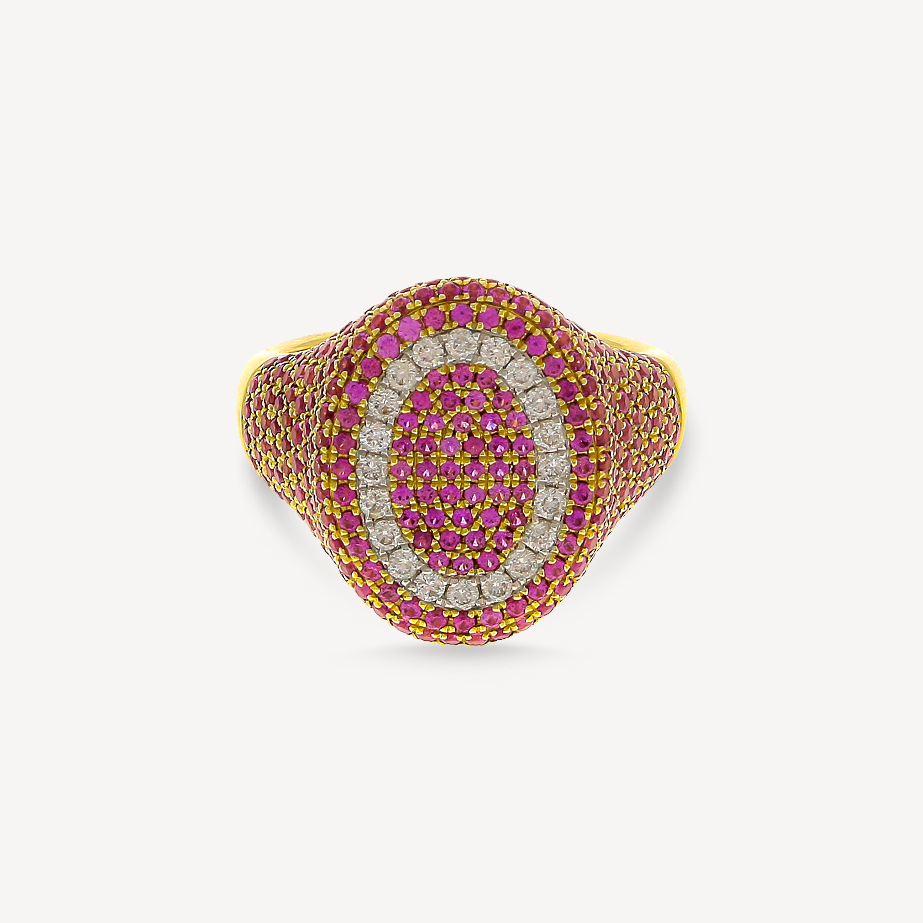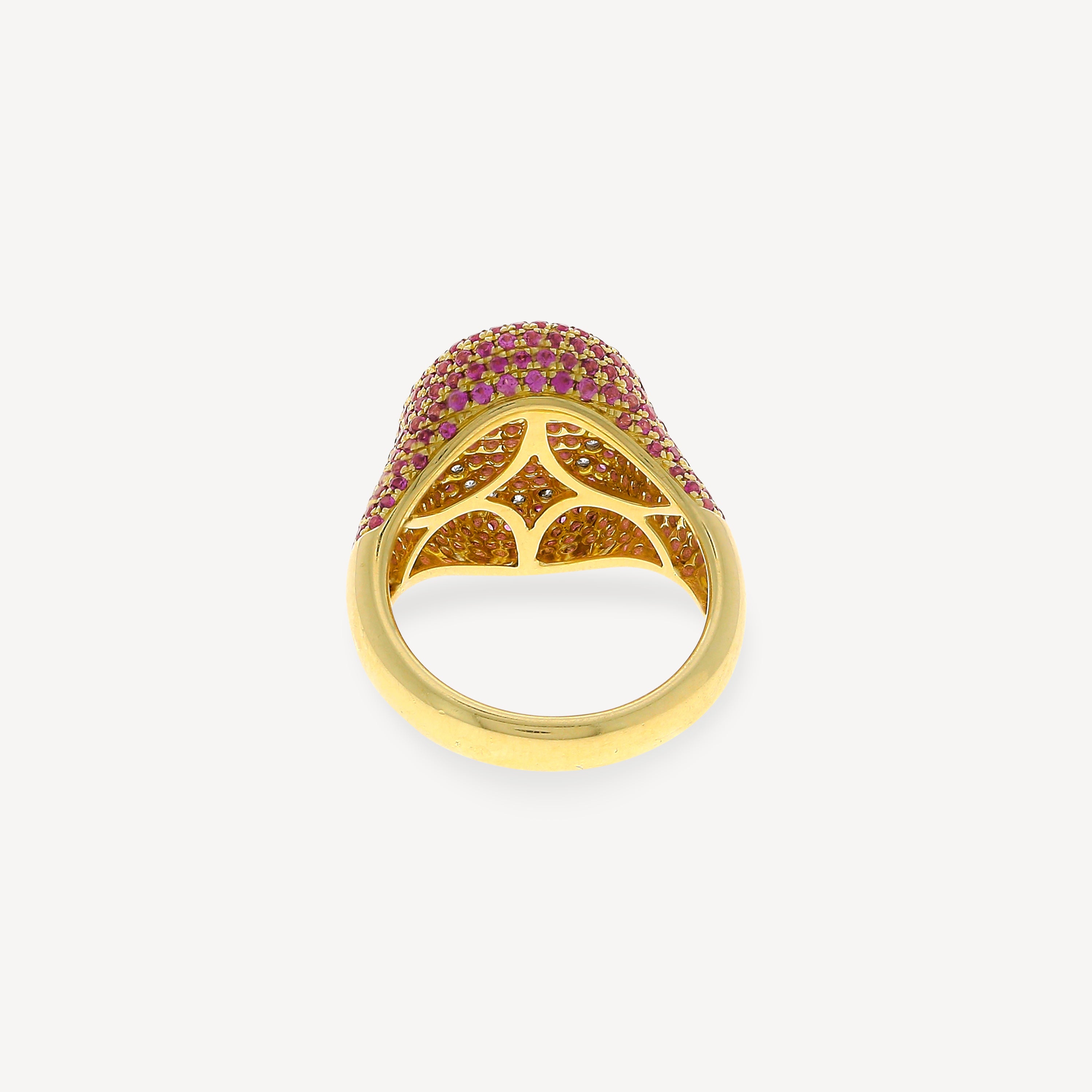 - Materialien: Gelbgold, weißer Diamant, rosa Saphir